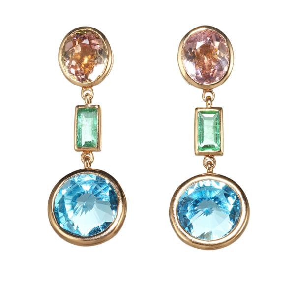 Retenant une émeraude (total env. 0,7 ct) et une topaze bleue (t...