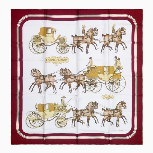 3822. Hermès, lot de deux foulards Coach & Saddle et Château d'Arrière