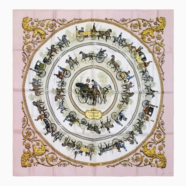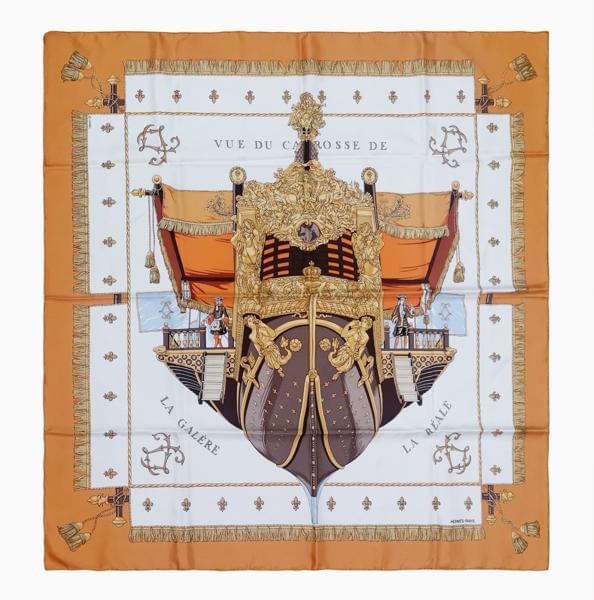 3816. Hermès, lot de deux foulards, Vue du Carosse de la Galère la Réa...