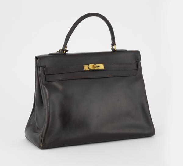 Cuir chocolat, garniture en métal doré, intérieur en trois poche...