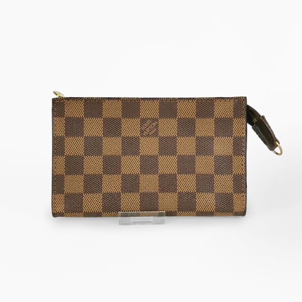 Toile enduite damier Ebène et cuir chocolat, poche latérale avan...