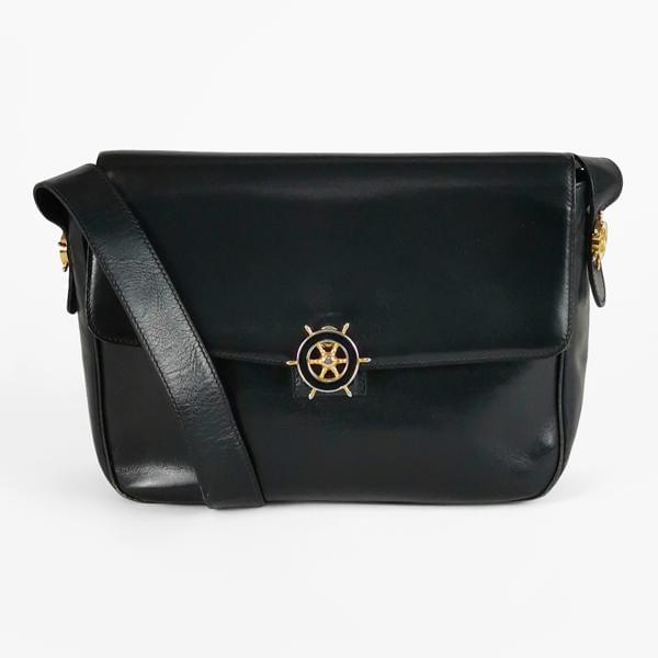 Cuir lisse noir, fermeture en rabat en forme de gouvernail, band...