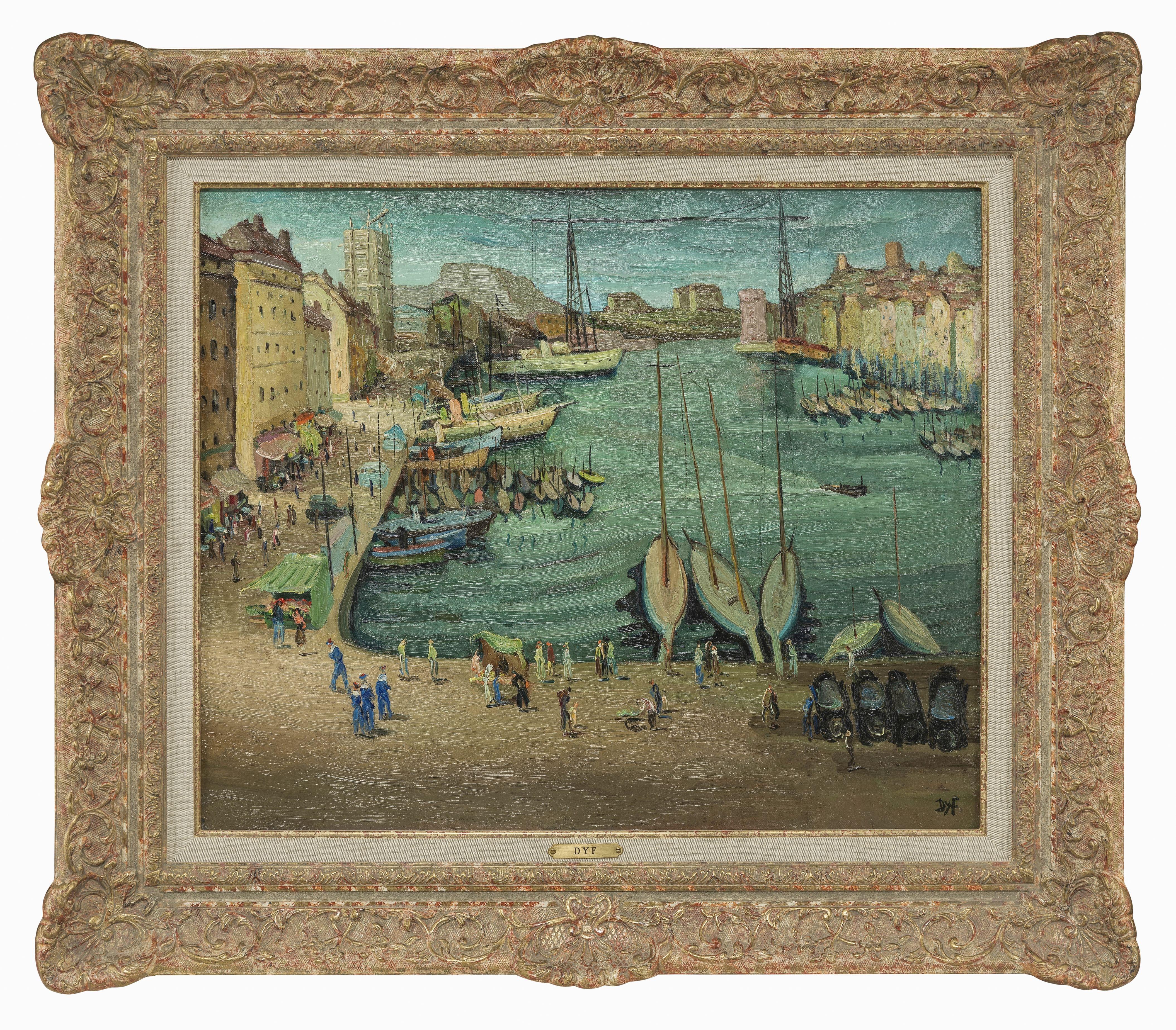 Le port de Marseille, huile sur toile, signée, 90x116 cm