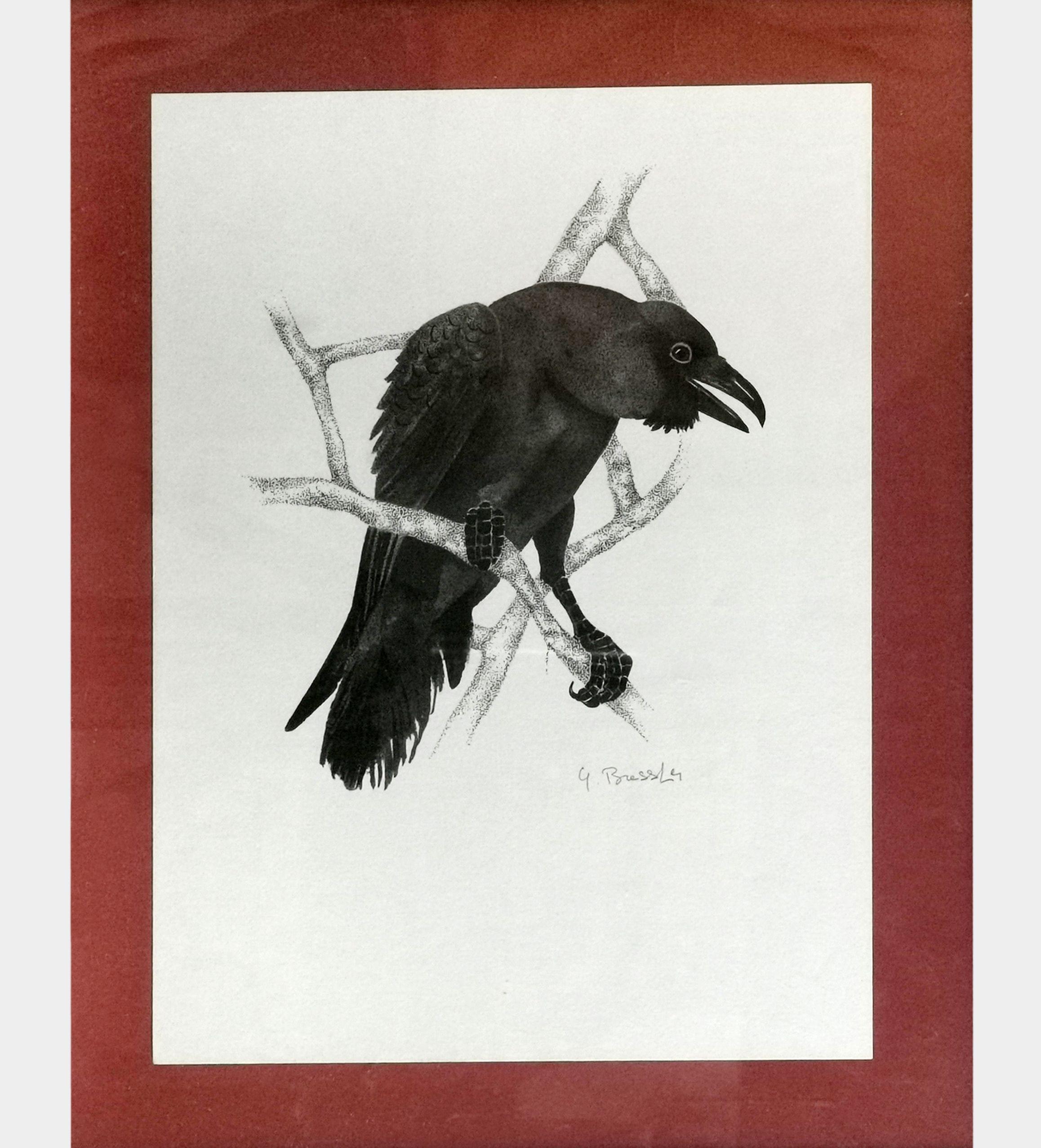 Corbeau, gravure signée à la mine de plomb, 40x30 cm