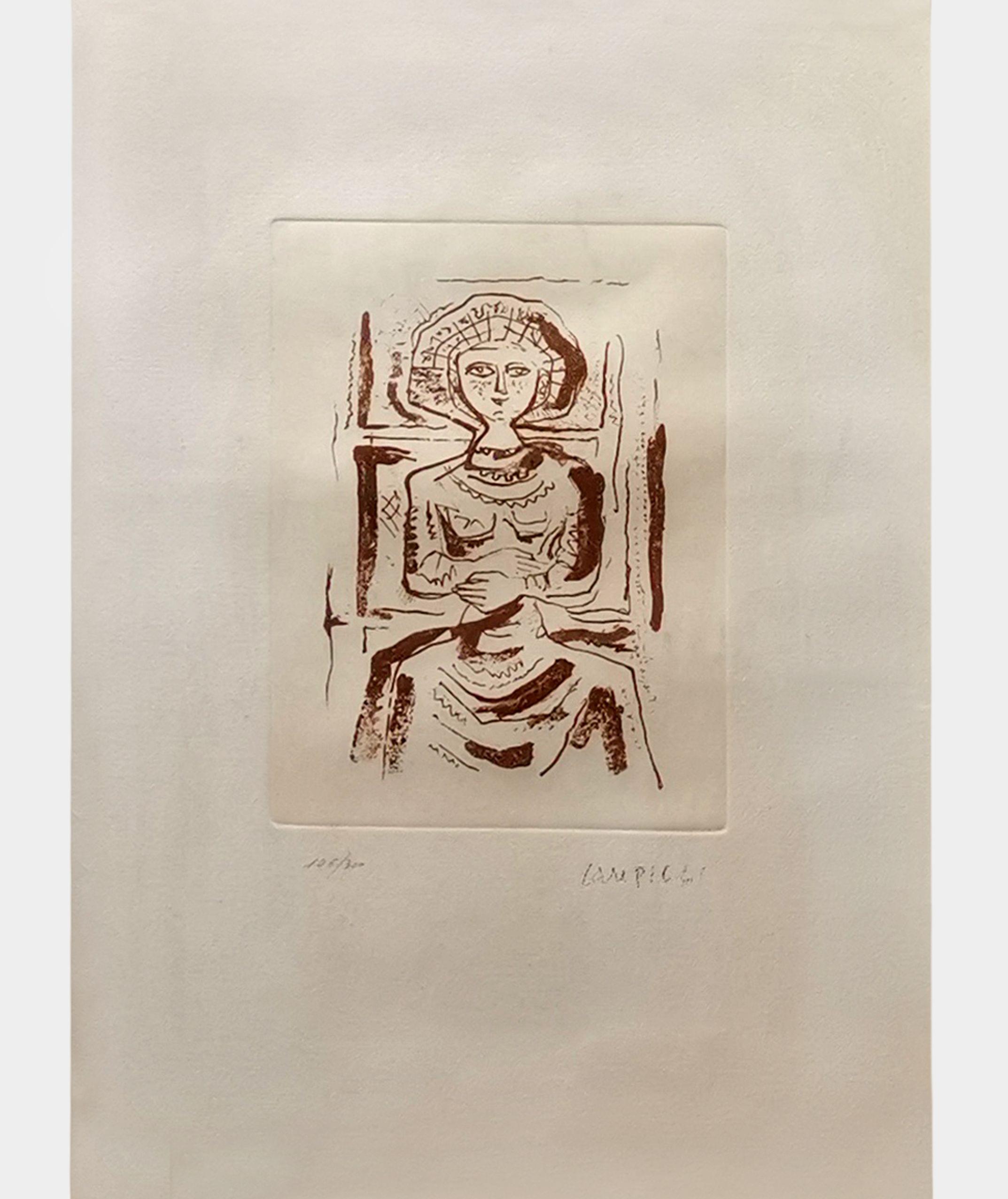 Femme sur un trône, lithographie, signée et numérotée 105/300, 24x18 cm