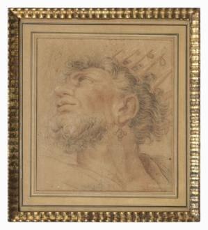 Figure d'un homme barbu, sanguine et fusain sur papier, 30x26 cm