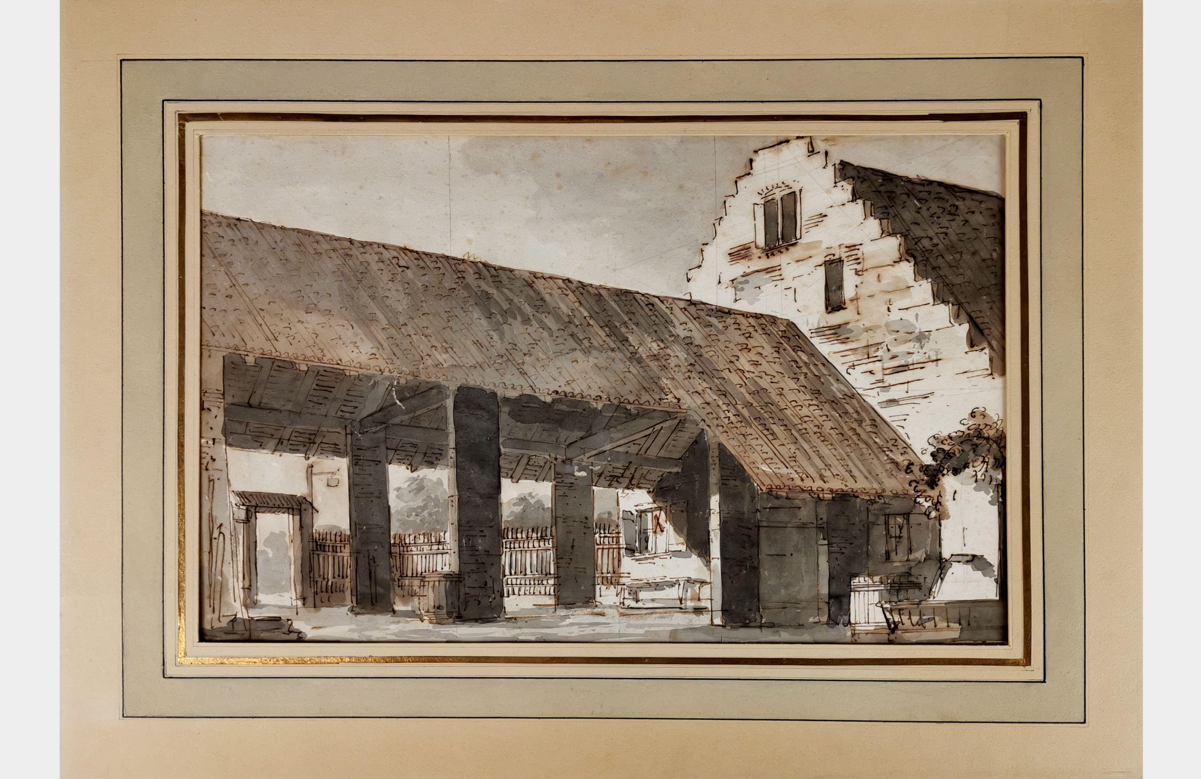 Etude pour un bâtiment, encre et lavis d'encre sur papier, 22x36 cm