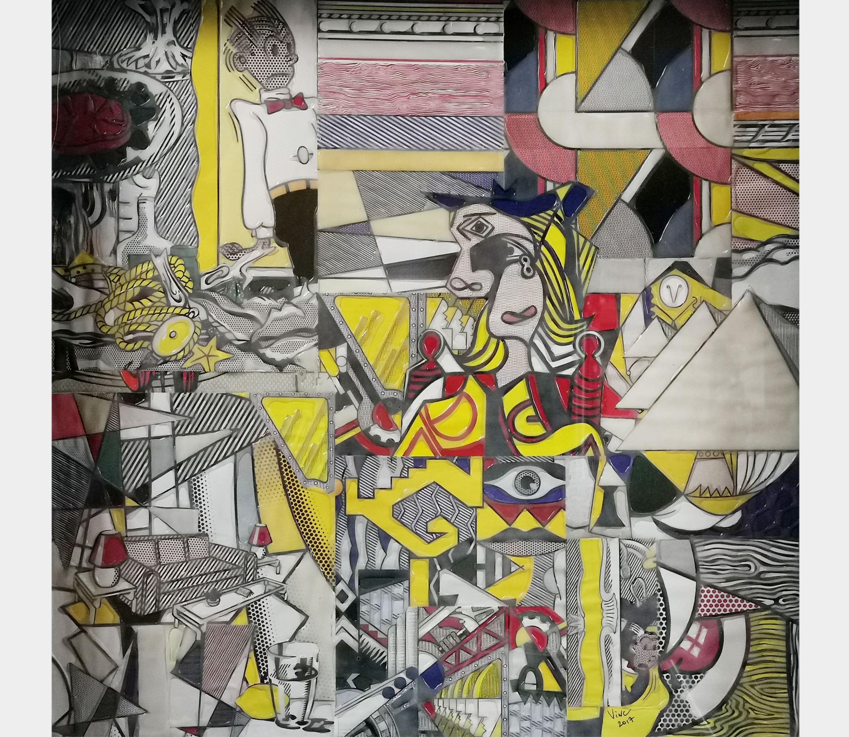 Blue Multi Tags, aérosol sur toile, signé au dos, 124x66 cm. On...