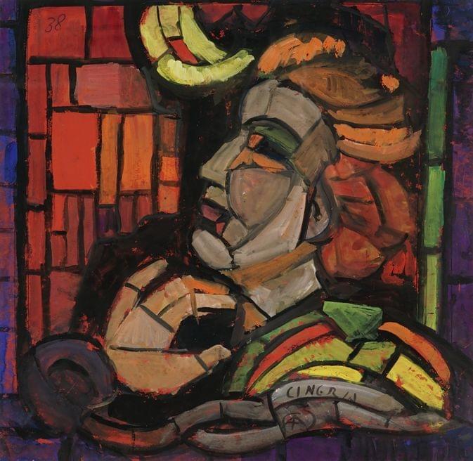 Portrait d'homme, gouache sur papier, signée et datée 38, 48x48 cm