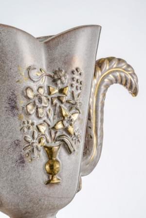 Grand vase à anse sirène, céramique émaillée grise, H 35 cm