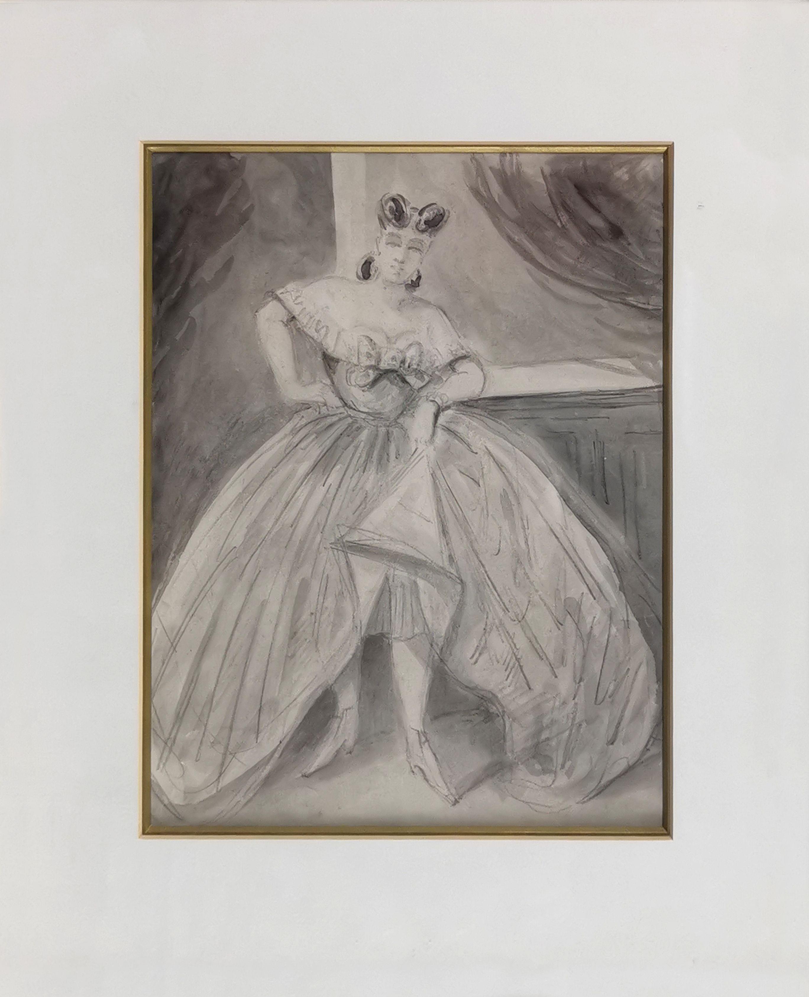 Scène d'intérieur, aquarelle et mine de plomb, 41x31 cm. Provena...