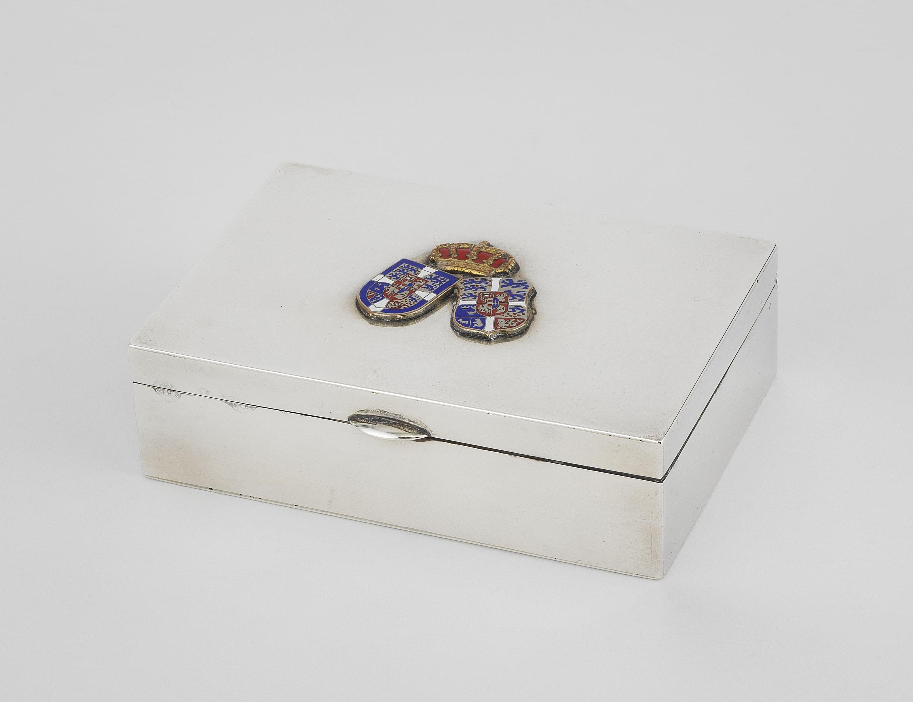 36. Boîte à cigarettes émaillée aux armes de Grèce et de Danemark