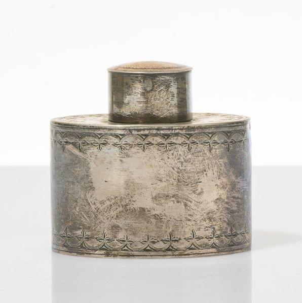 93. Boîte ronde d'époque néoclassique à décor finement niellé d'un t...
