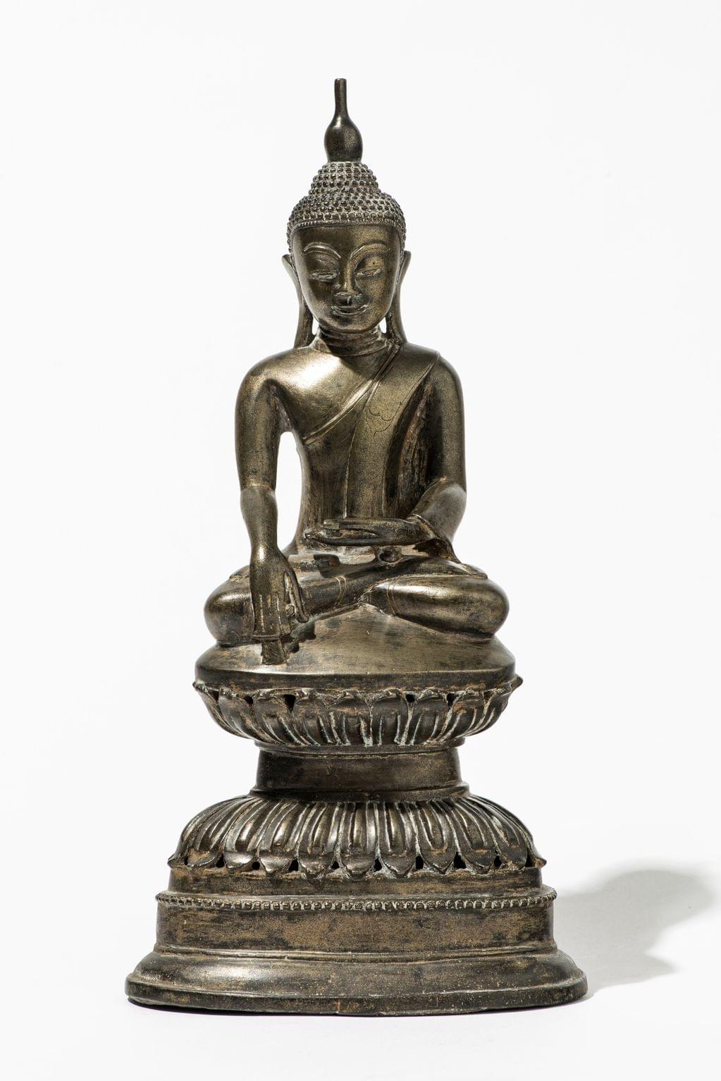 901. Bouddha accroupi sur un piédestal de fleurs de lotus en bhûmisparsha mudra