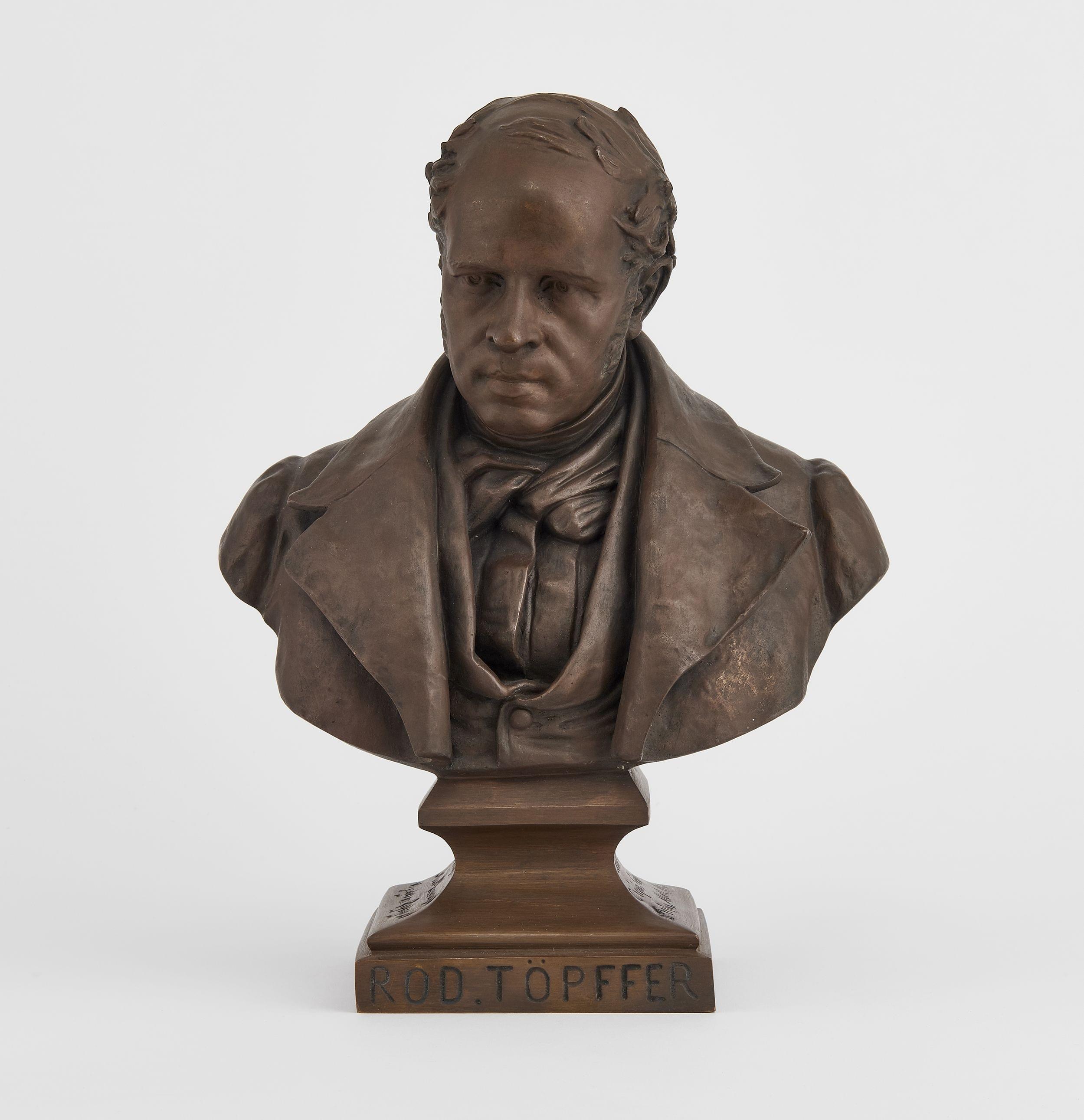 Buste de Rodolphe Töpffer (1799-1846), fondeur A Rolland, bronze à patine brune, H 31 cm