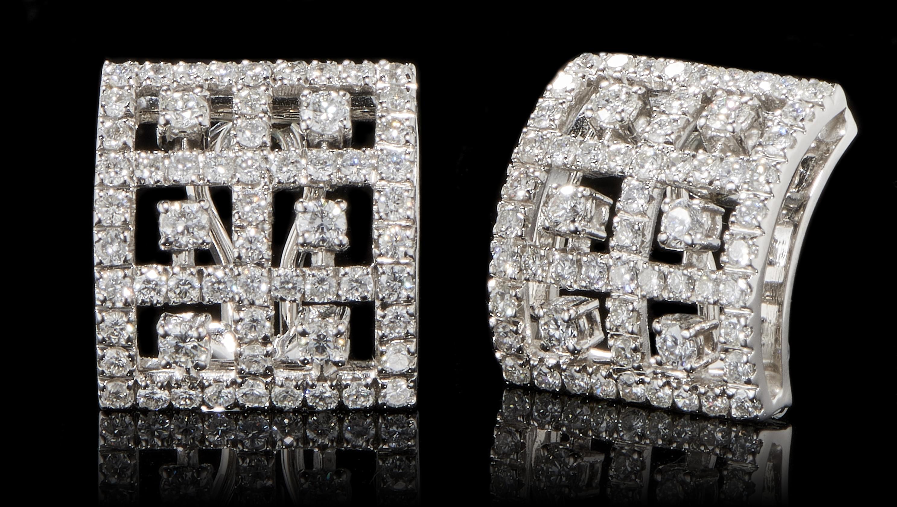 1087. Clips d'oreilles carrés ajourés sertis de diamants (env. 3,5 ct)