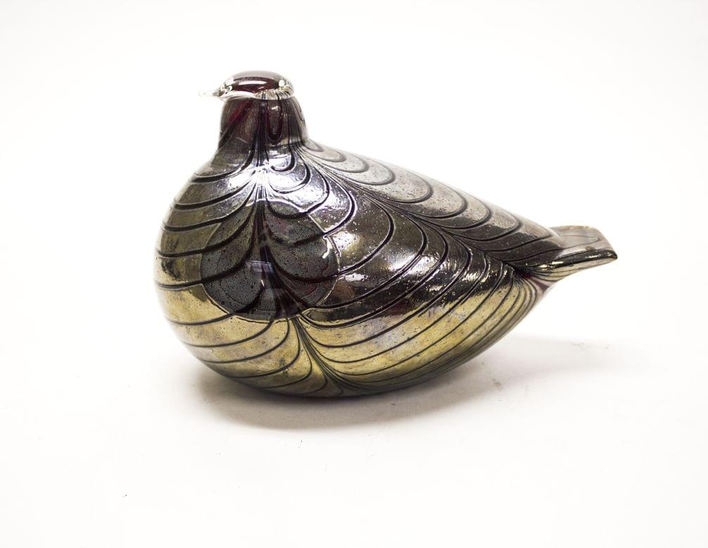 Verre grenat irisé argenté, probablement Venise, L 21 cm