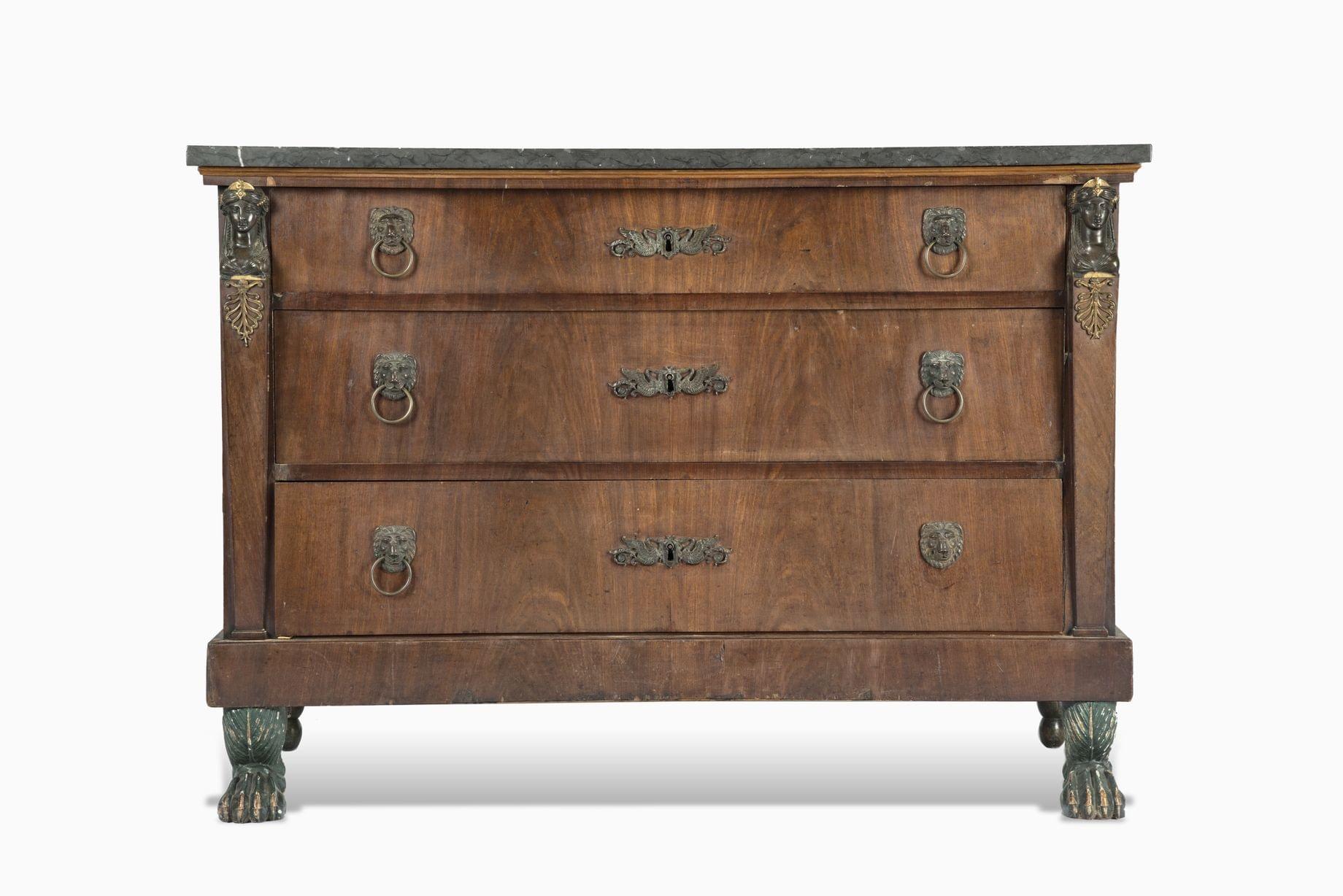 Trois tiroirs, montants pilastres à l'égyptienne, pieds griffes,