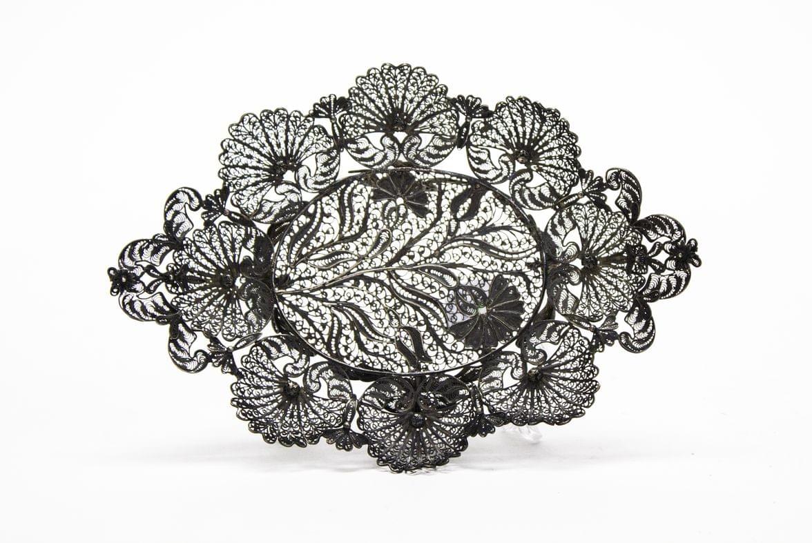 88. Sac à maille souple à décor de fleurs et feuillages ajourés