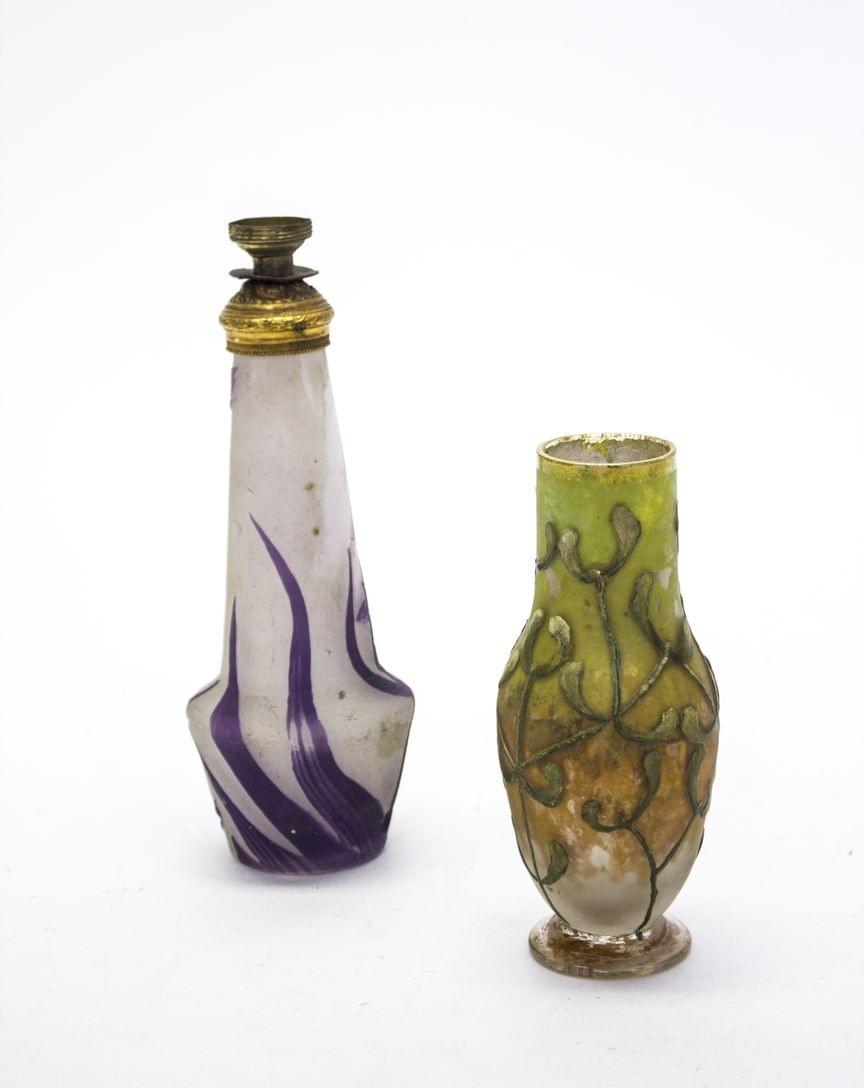 3678. Deux vases Art Nouveau à décor de gui et iris