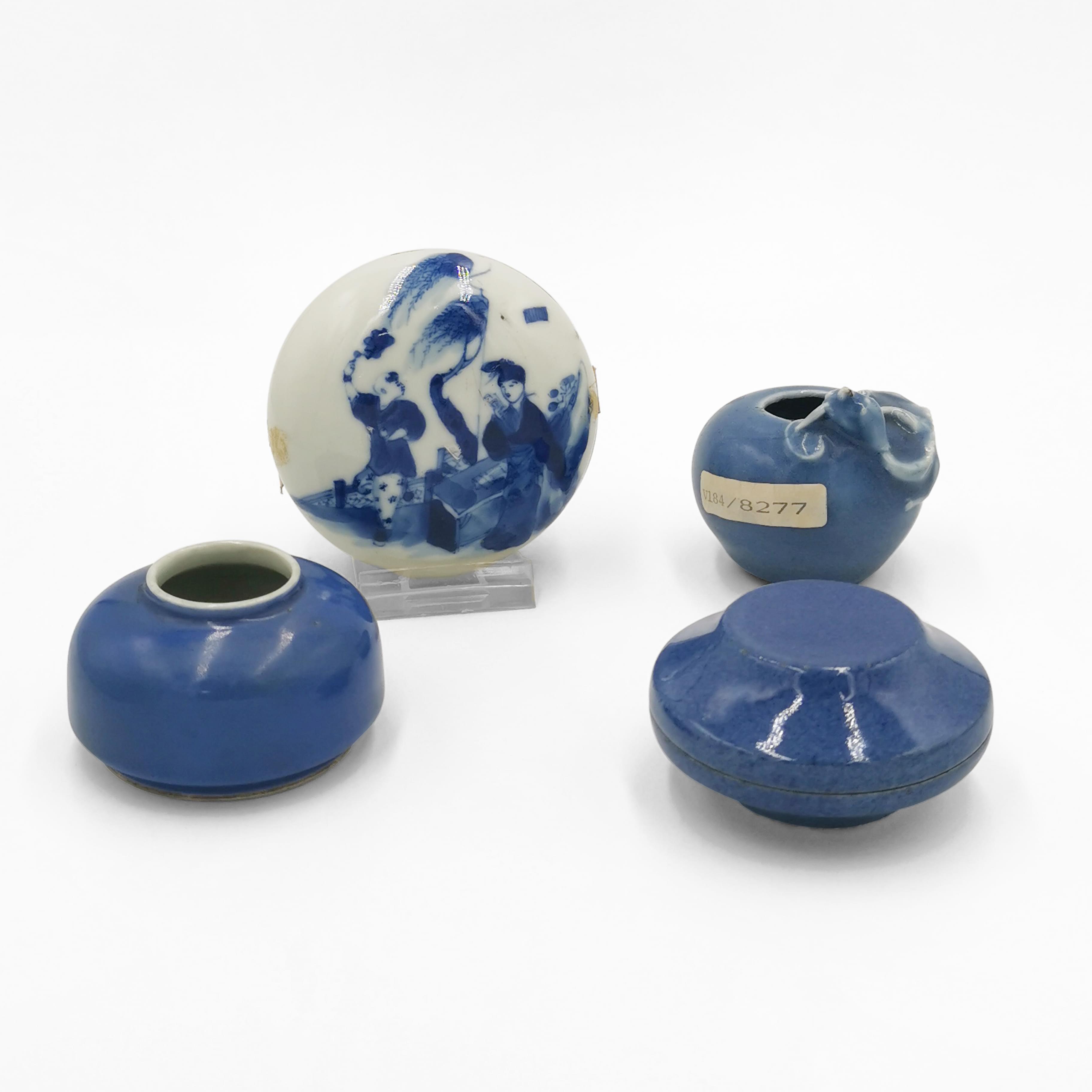 Porcelaine émaillée bleu poudré et bleu blanc, D de 5,5 à 6,5 cm