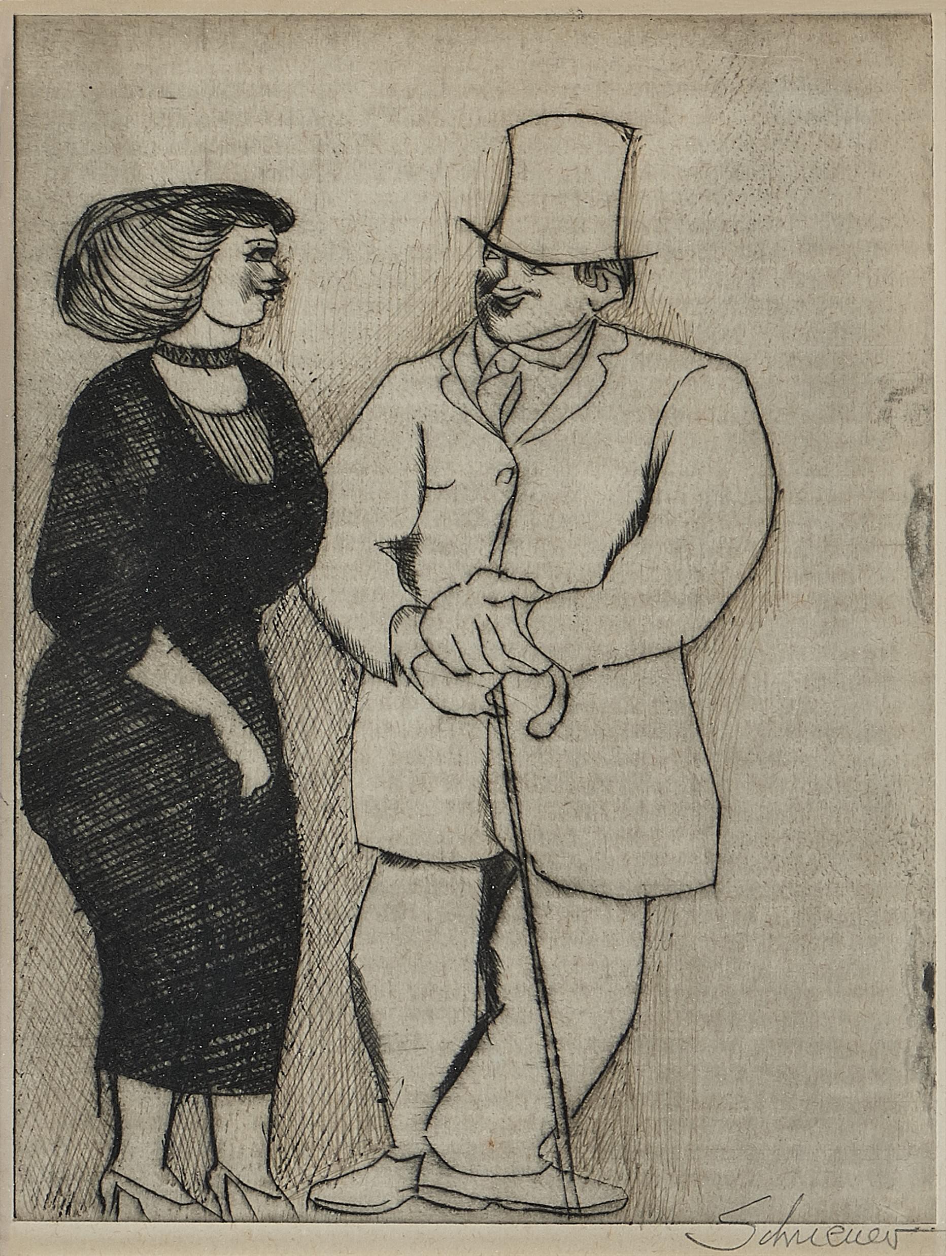 Couple de bourgeois, gravure, signée, 16x12 cm