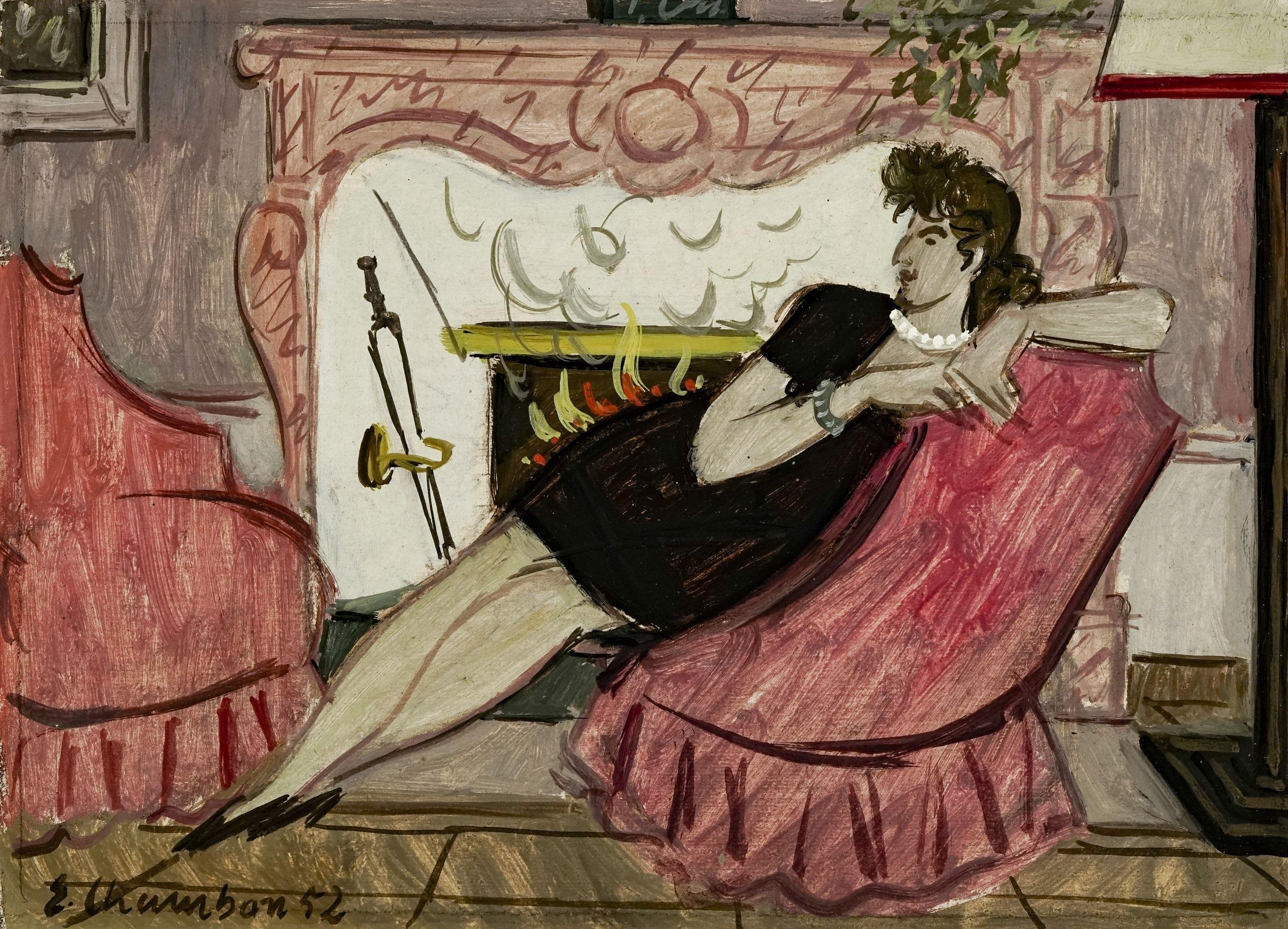 Jeune fille blonde au miroir, huile sur carton, signée et datée...