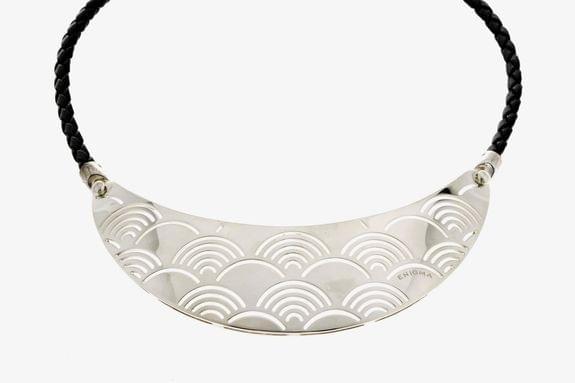 Cadran noir, aiguilles et index bâton argentés, bracelet en daim...