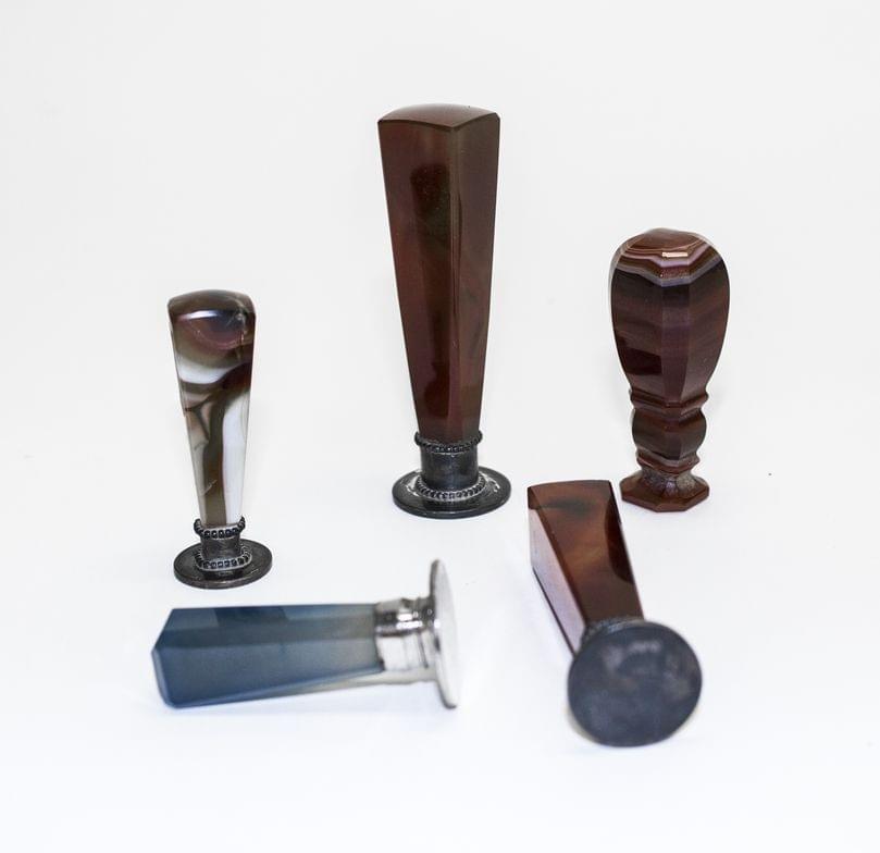 47. Lot formé de deux sceaux, l'un émaillé et serti d'une intaille s...
