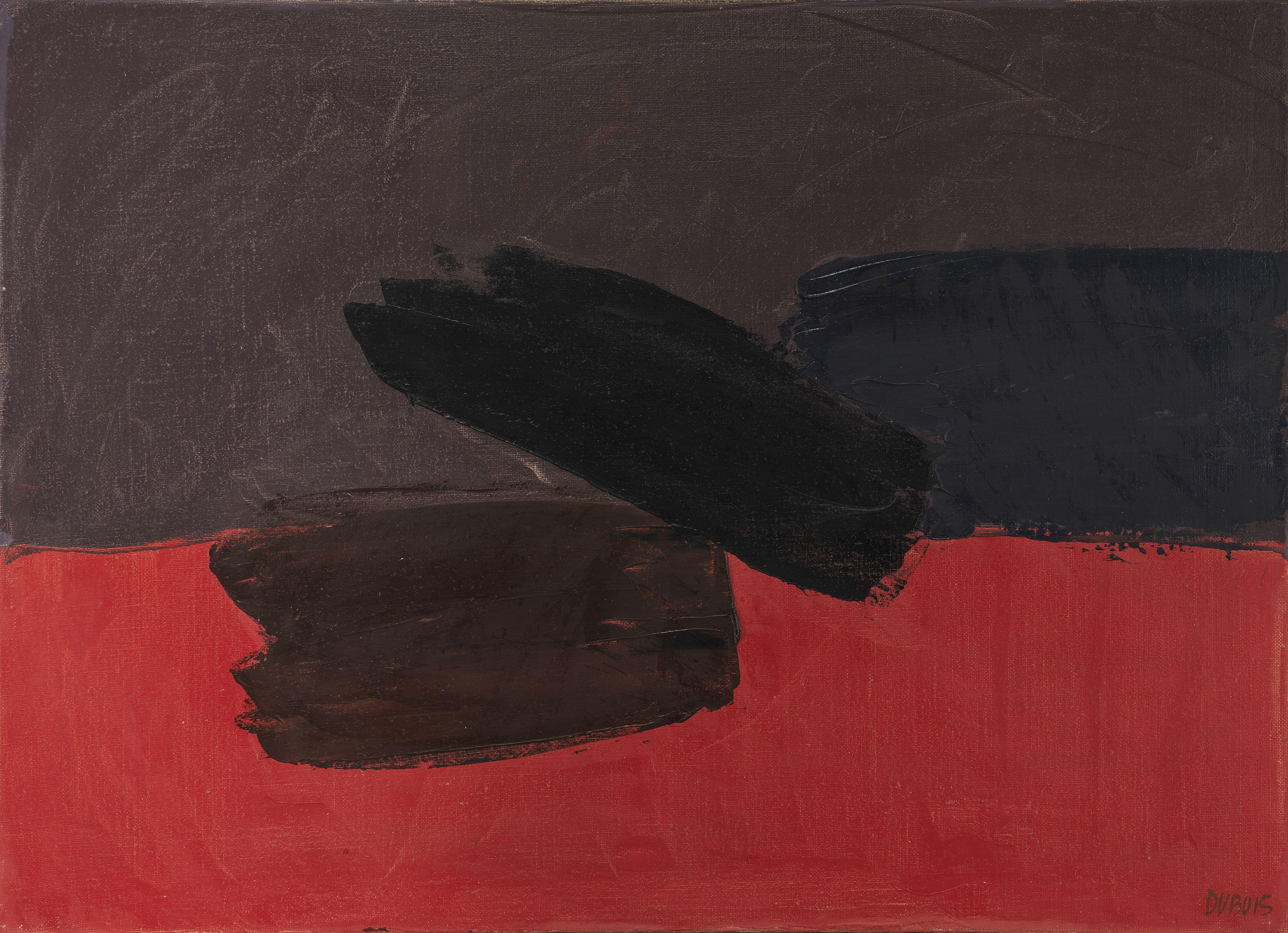 Composition rouge, noire et grise, huile sur toile, 72x100 cm