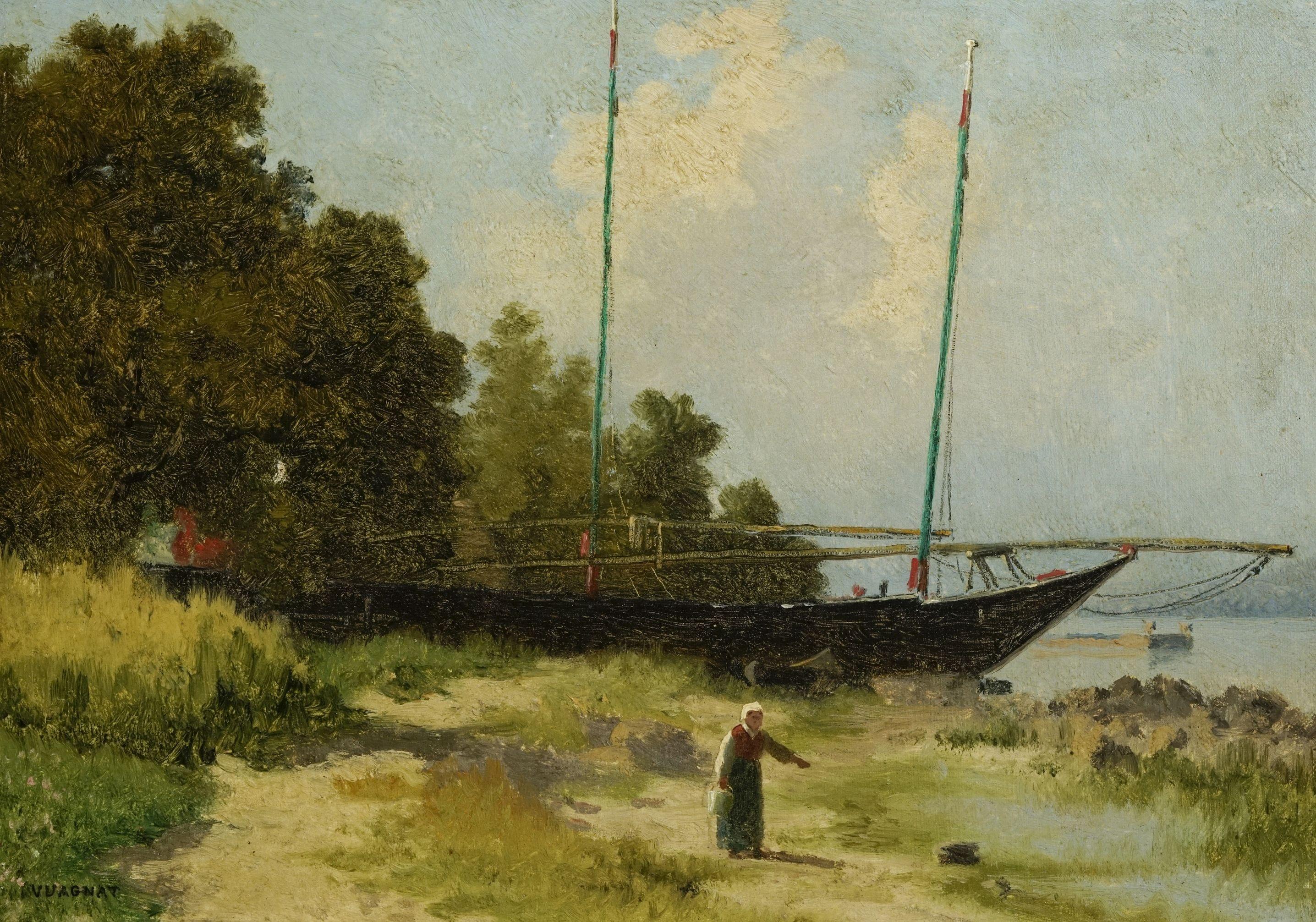 Coucher de soleil sur l'île Saint-Pierre, huile sur carton, 19,5...