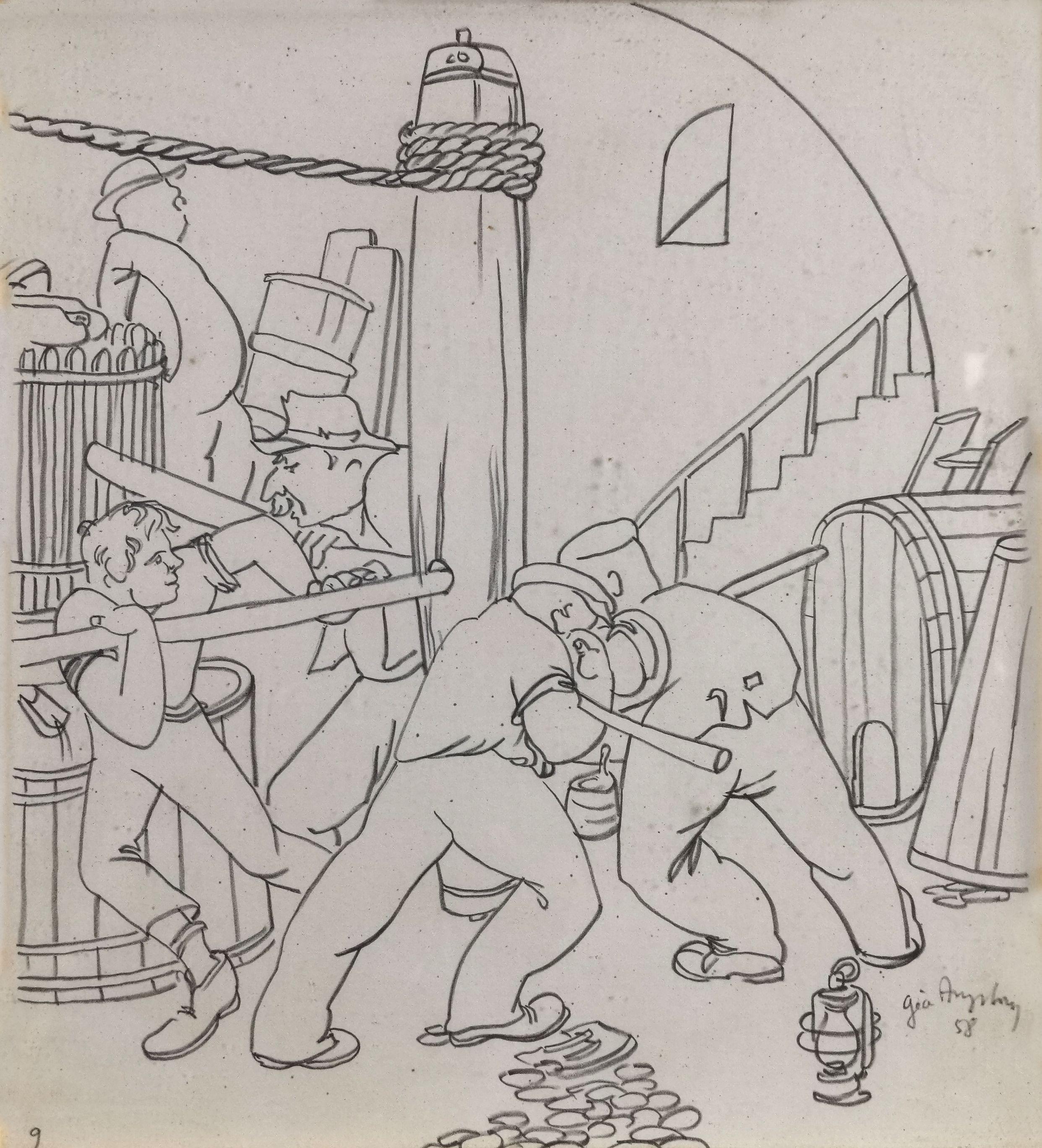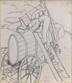 David Burnand peintre, fusain sur carton, signé, titré et daté 1...