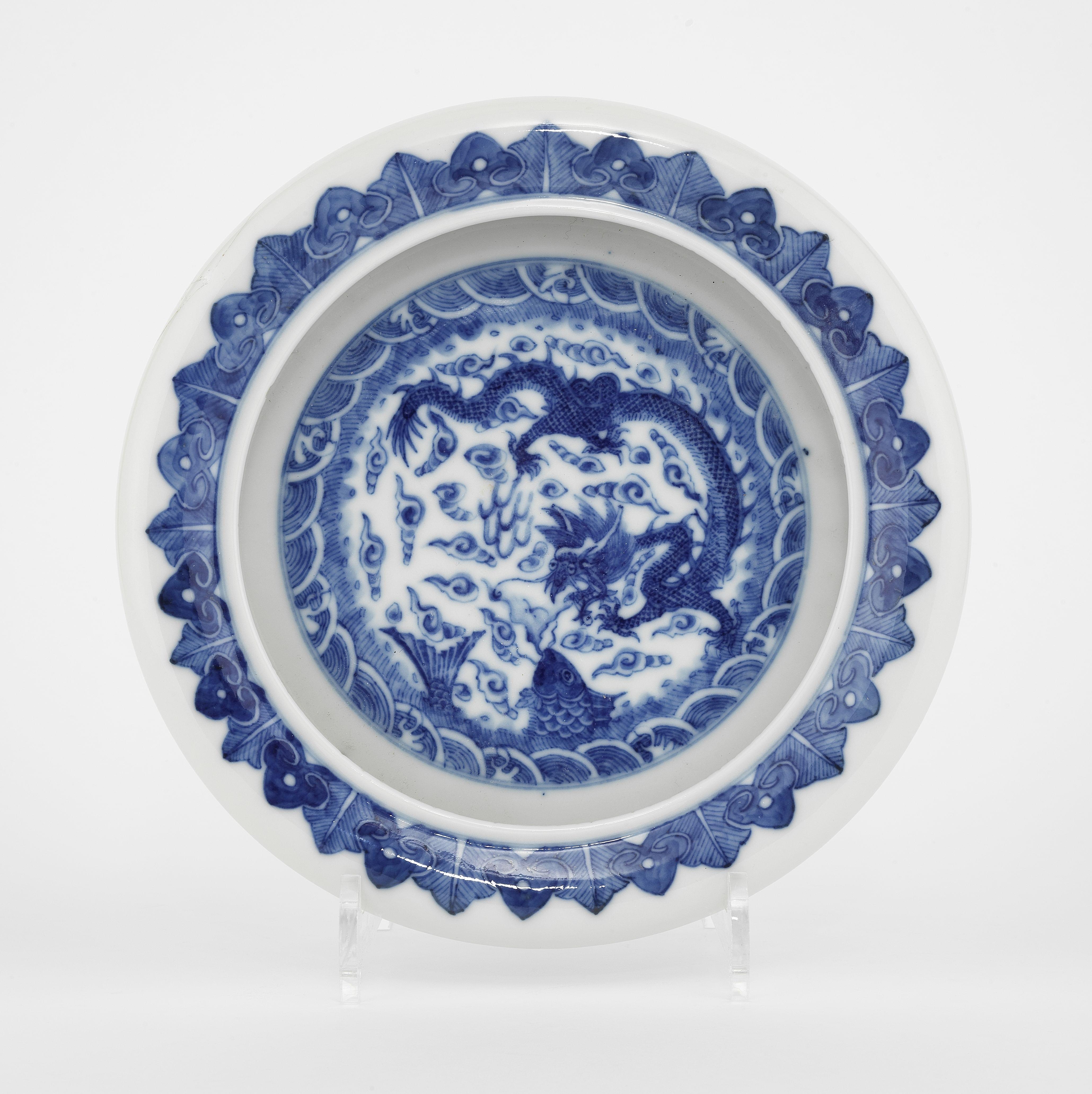 Porcelaine blanche à motif incisé de dragons poursuivant la perl...