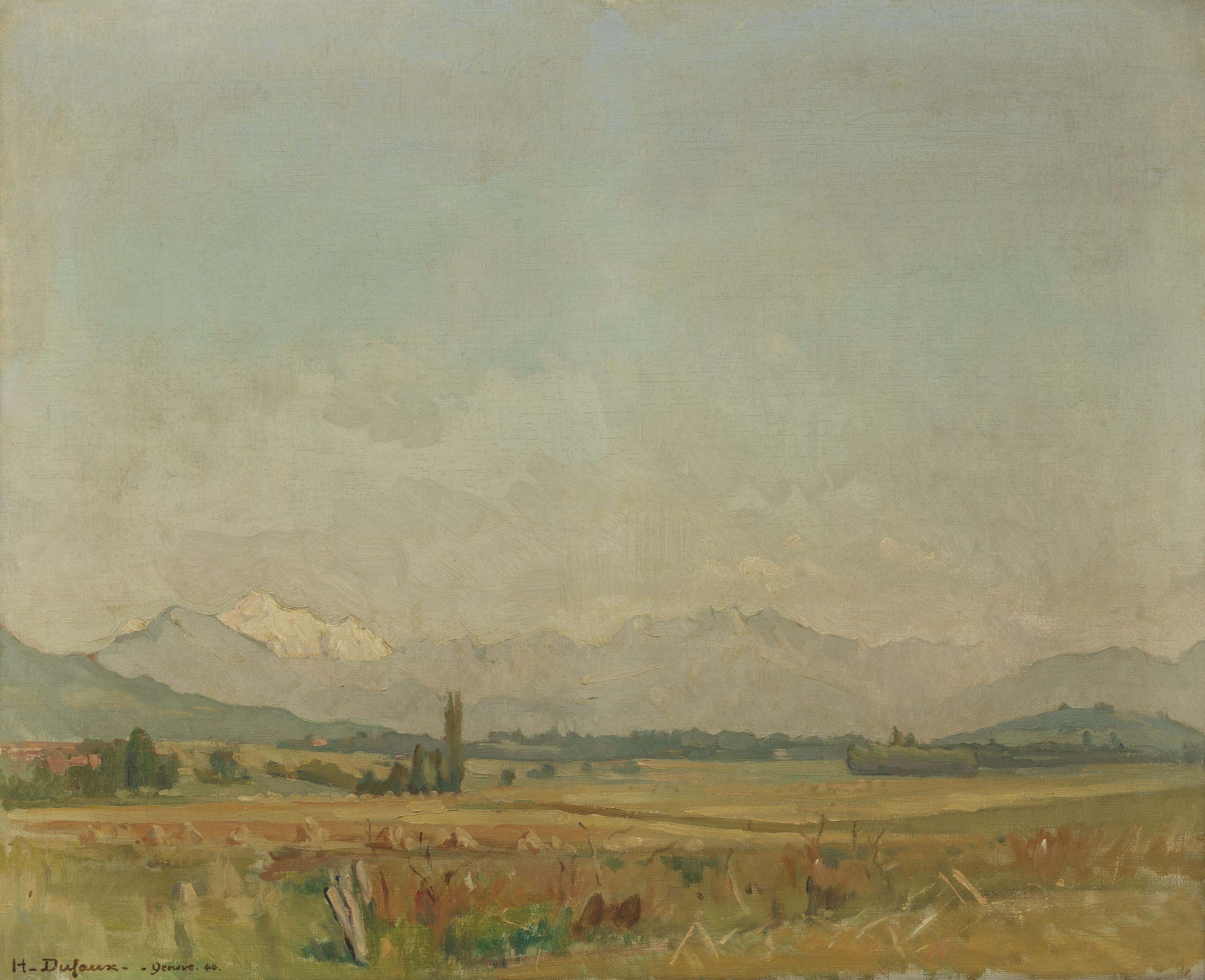 Vue du lac Mattmark, huile sur panneau, signée et datée 1907, 19...