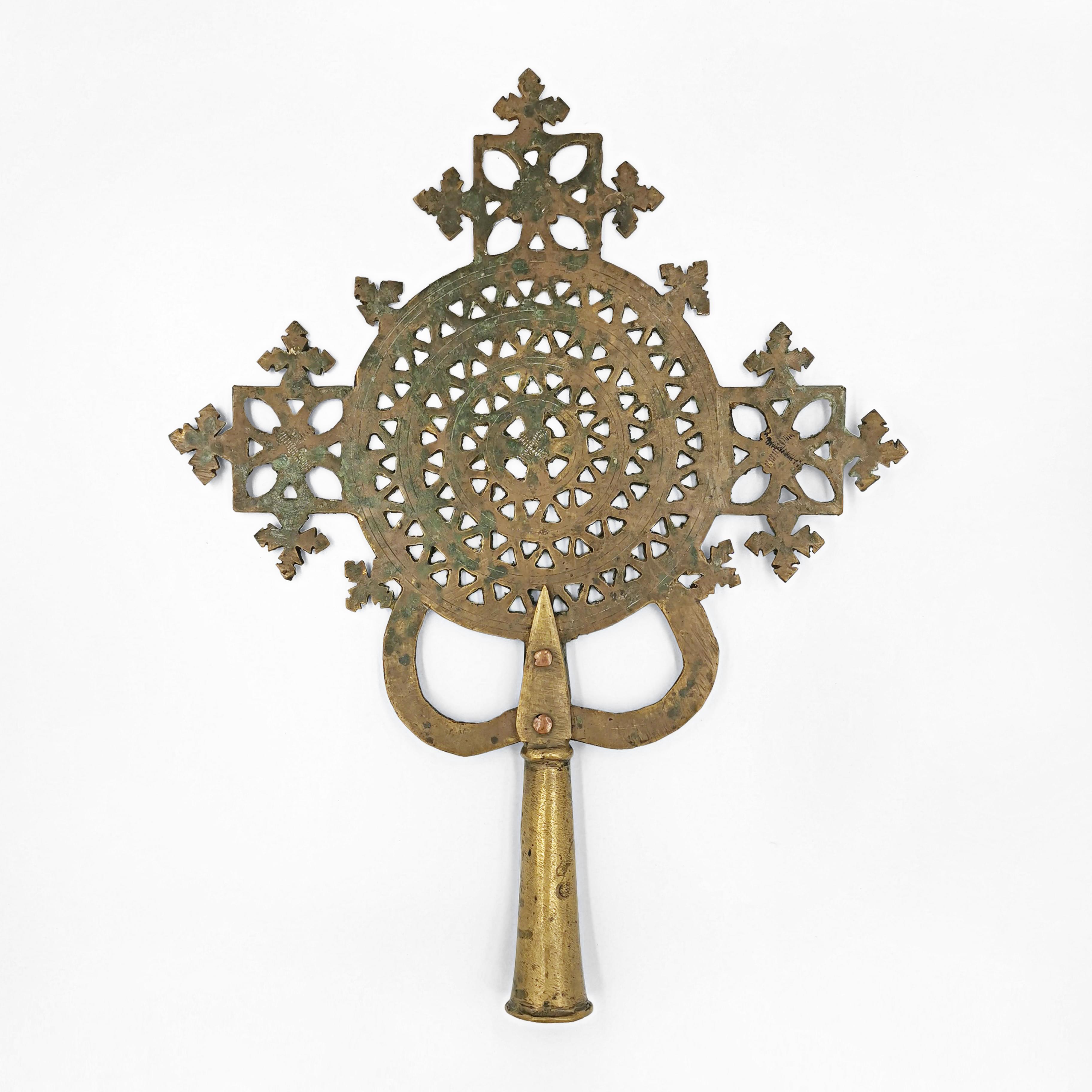 3066. *Croix montée en pendentif à décor ajouré et ciselé