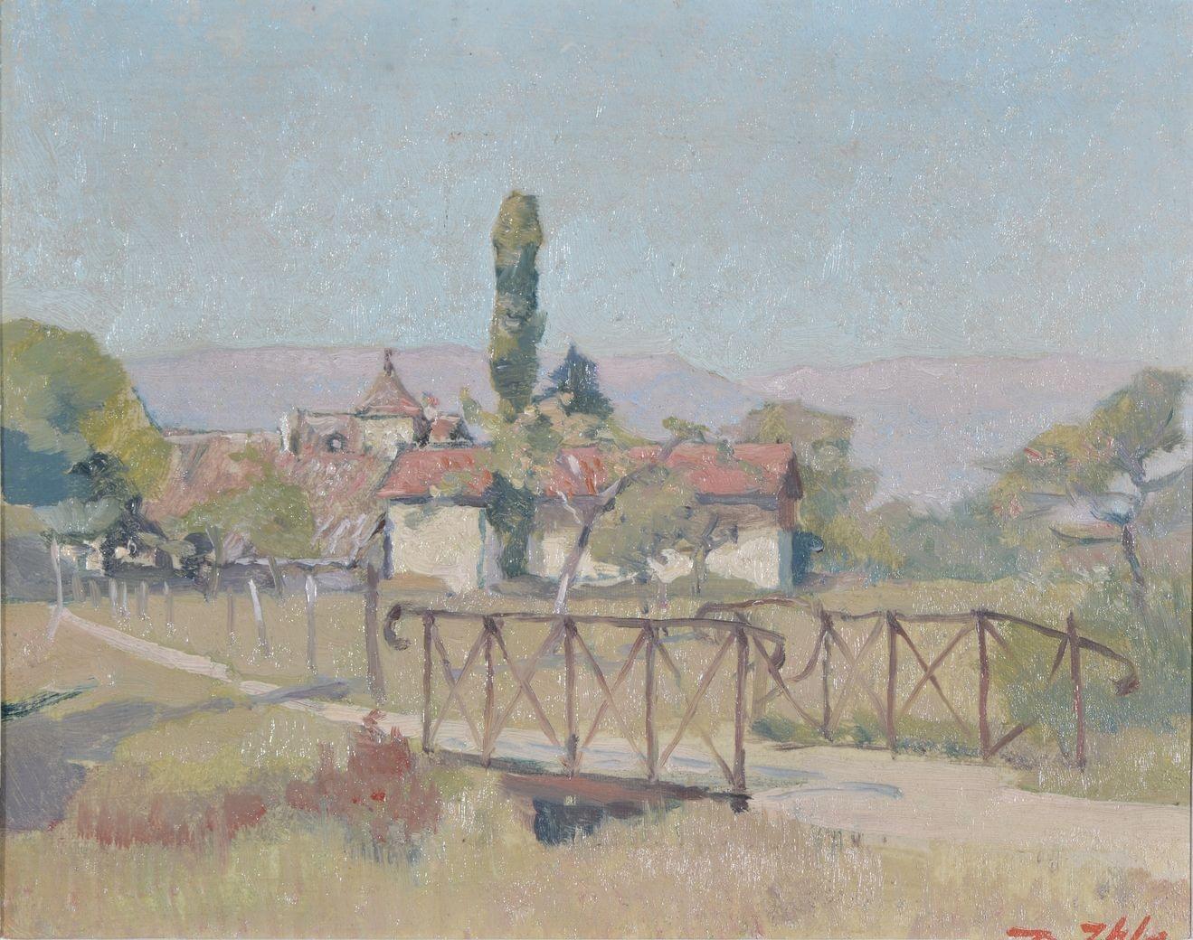 Chemin conduisant à la ferme de St Georges, huile sur carton signée, 22x27 cm