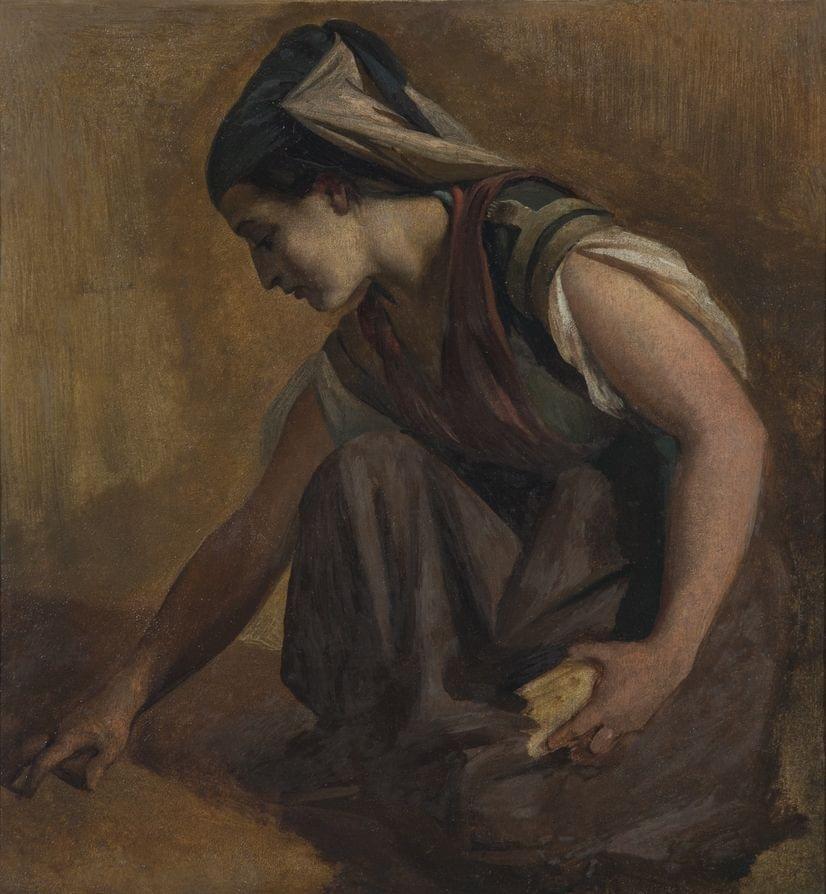 Ruth dans le champ de Booz, étude, huile sur toile, 30x28 cm