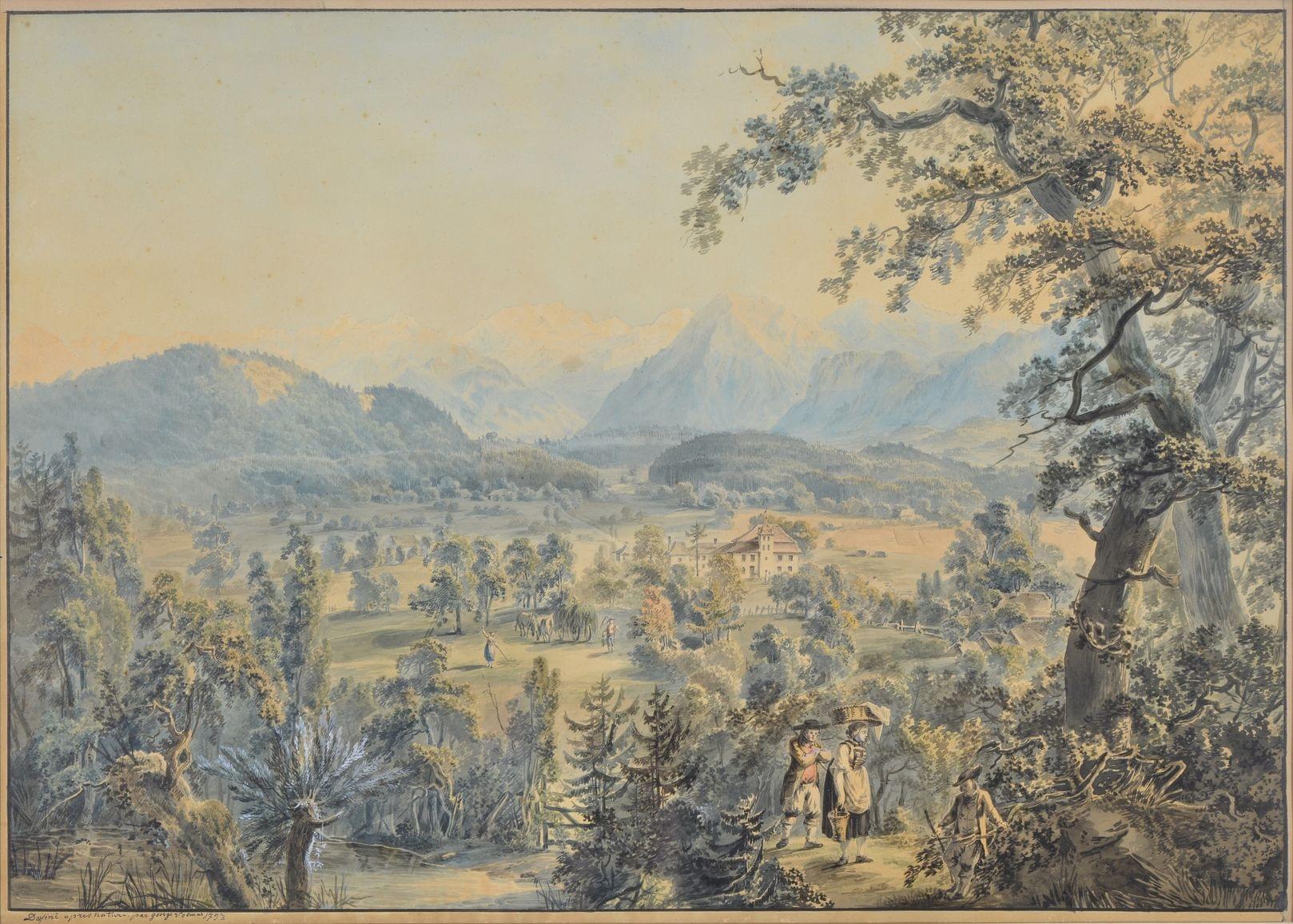 Vue de Delphes d'après Le Lorrain, plume et lavis d'encre sur pa...