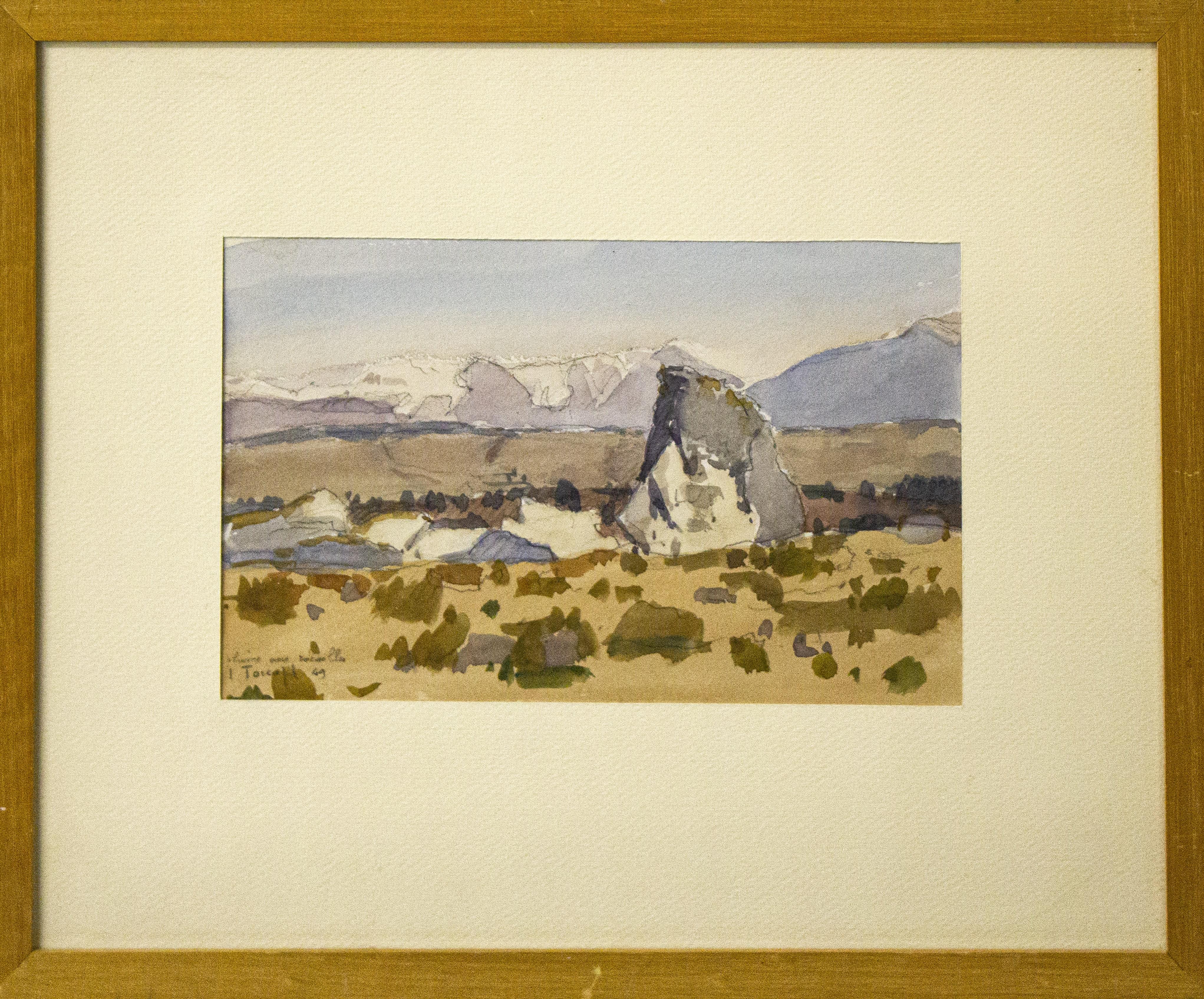 Vue d'une plaine dans les Alpes, signée et datée 49, 14x23 cm