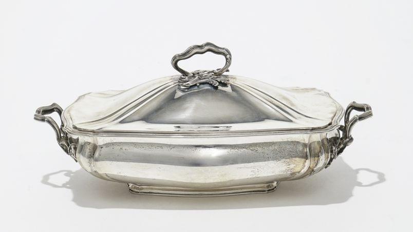 413. Légumier rectangulaire à anses de chêne et d'acanthe,