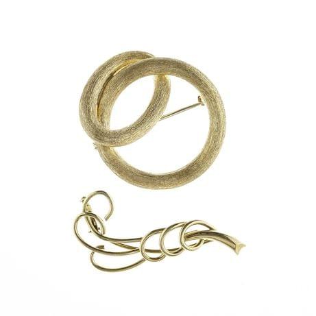 3236. Lot de deux broches stylisées dont l'une en or satiné