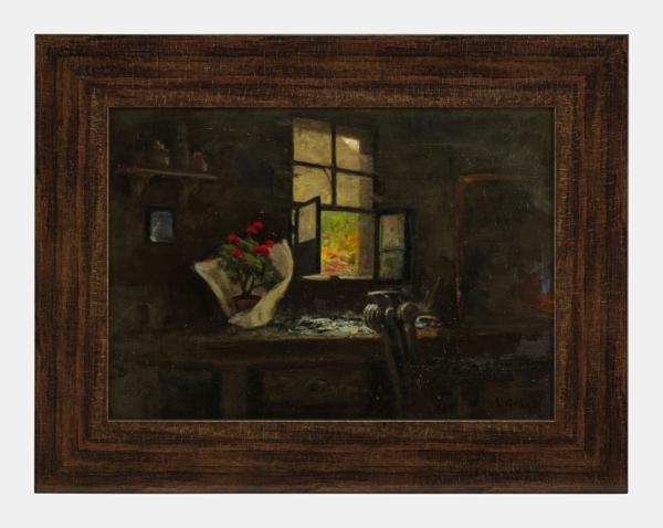 Vue d'intérieur, huile sur toile, signée, 32x45 cm