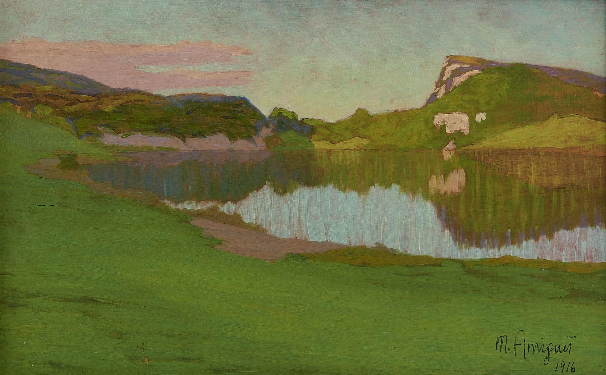 Vue du lac Brenet et de la Dent de Vaulion, huile sur toile, cad...