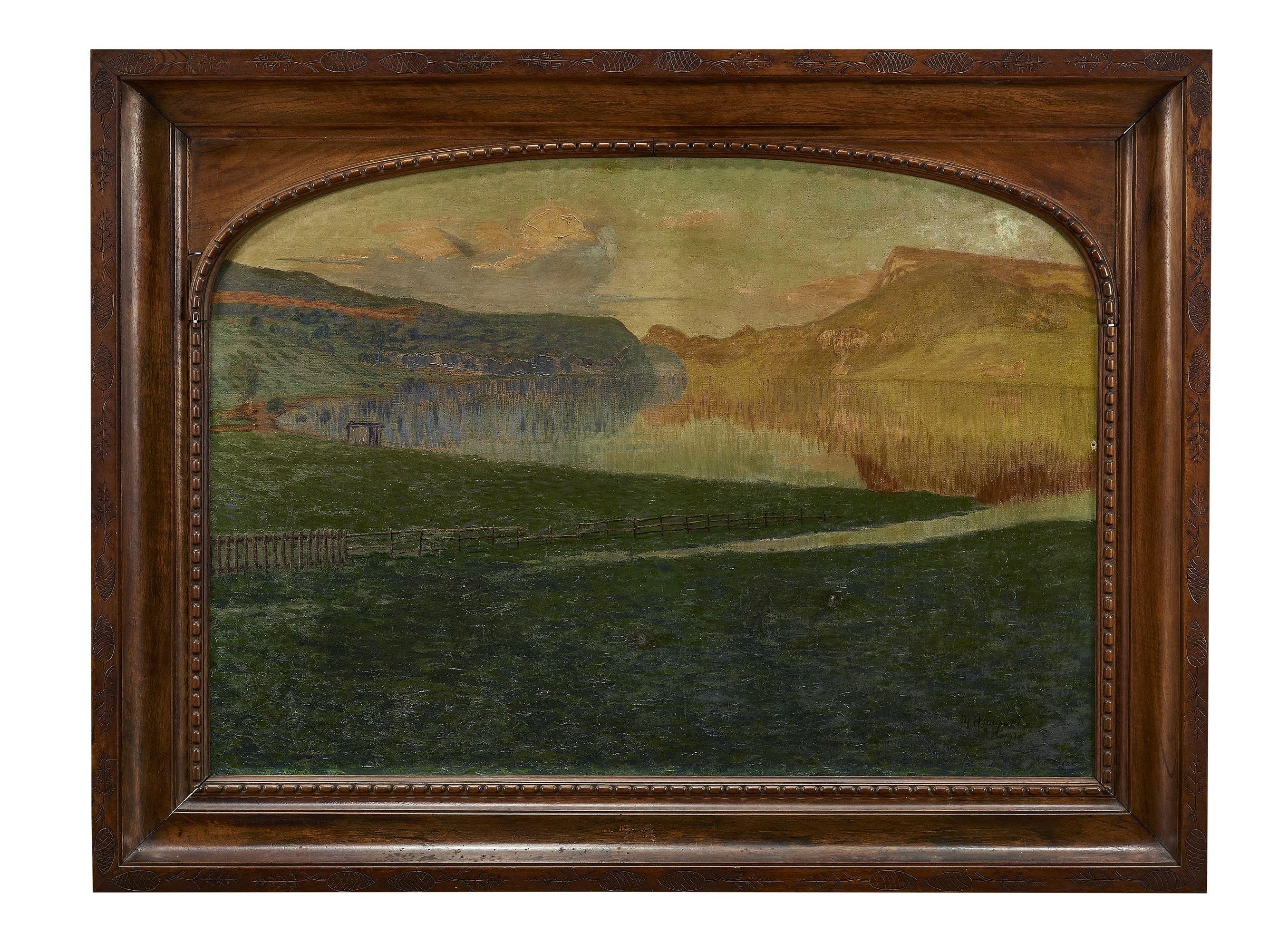 Vue du lac Brenet et de la Dent de Vaulion, huile sur panneau, s...
