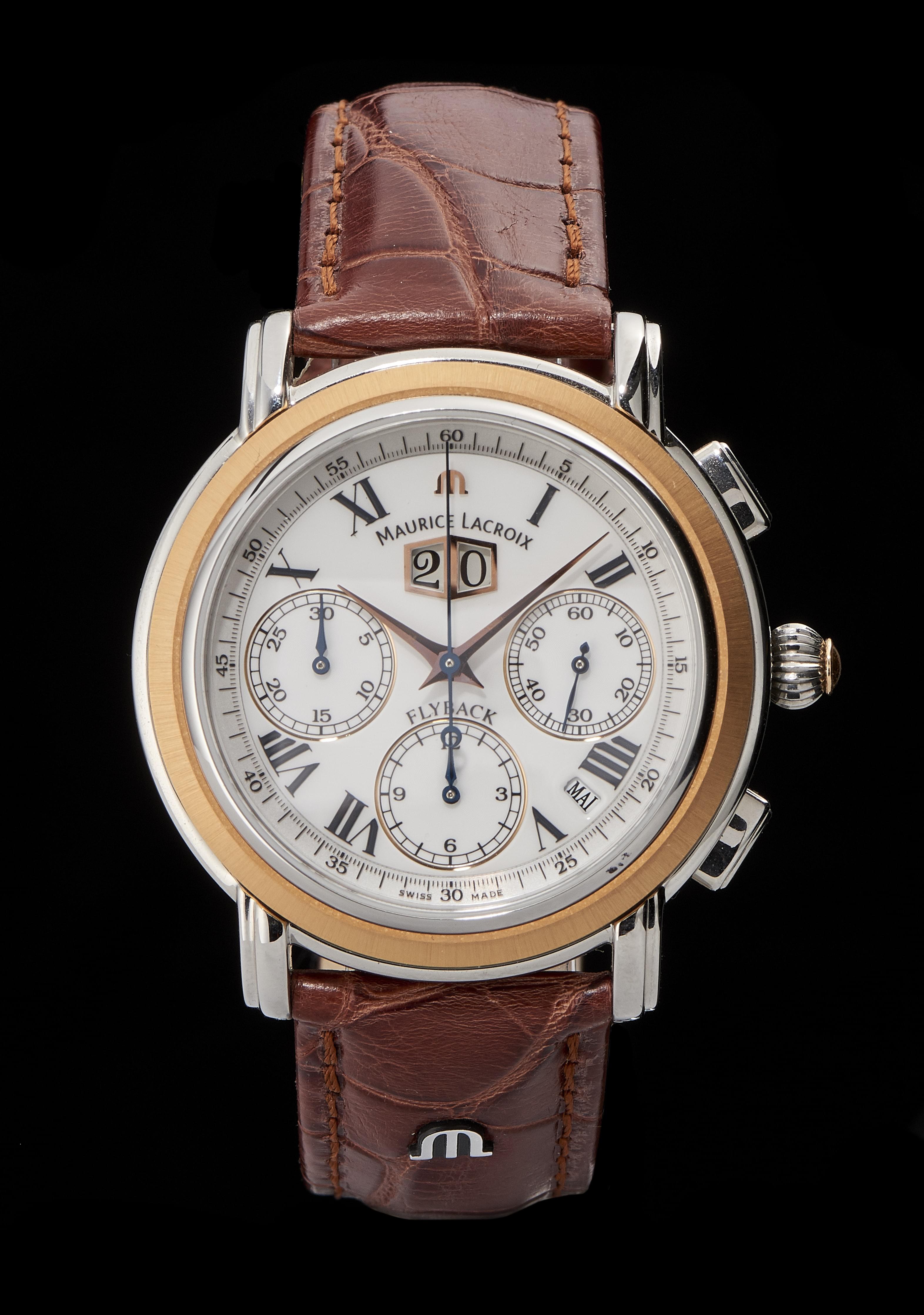 293. Maurice Lacroix, Flyback, montre chronographe ronde automatique à quantième annuel