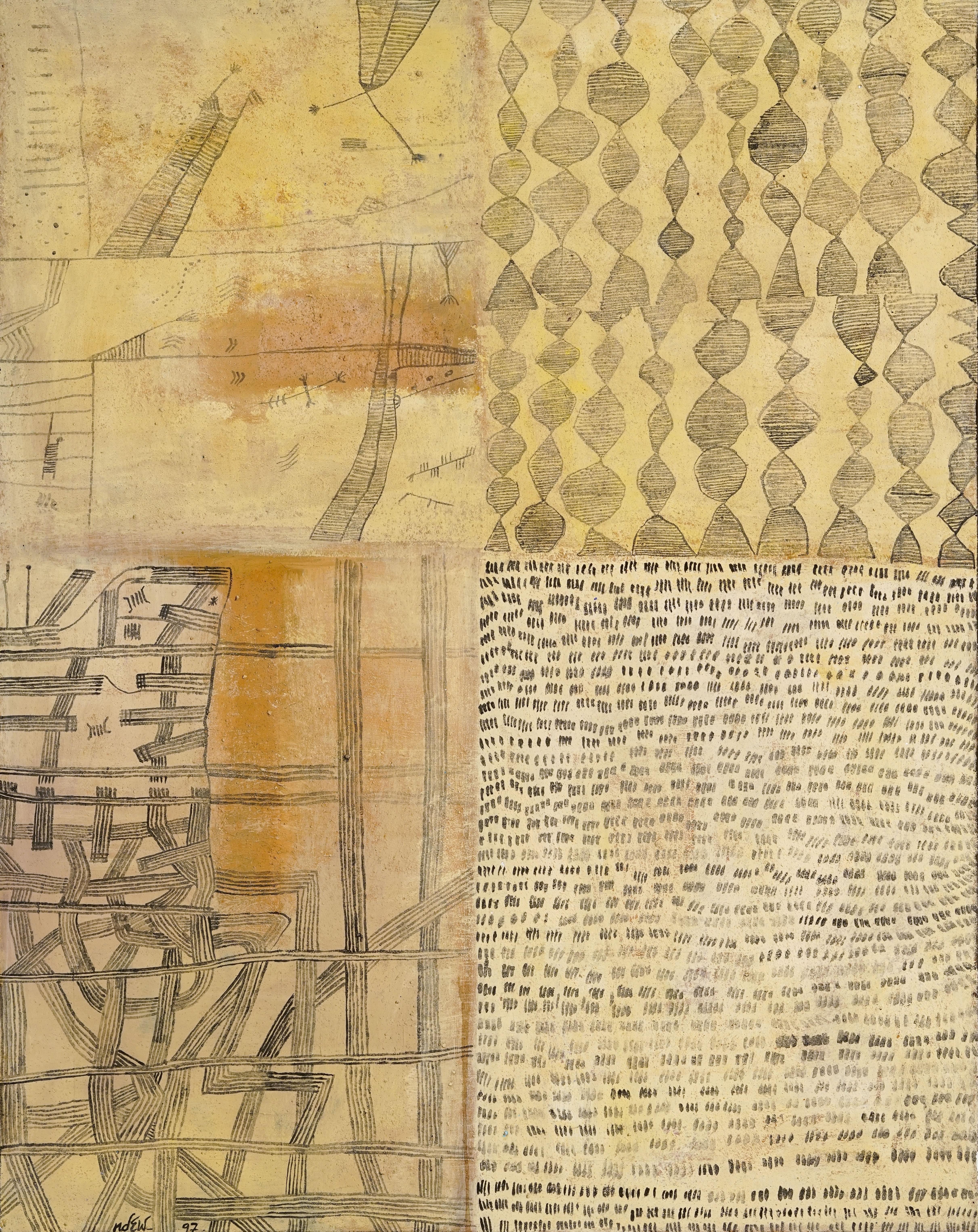 Bambuti, acrylique sur toile, monogrammée et datée 97, 90 x 100...