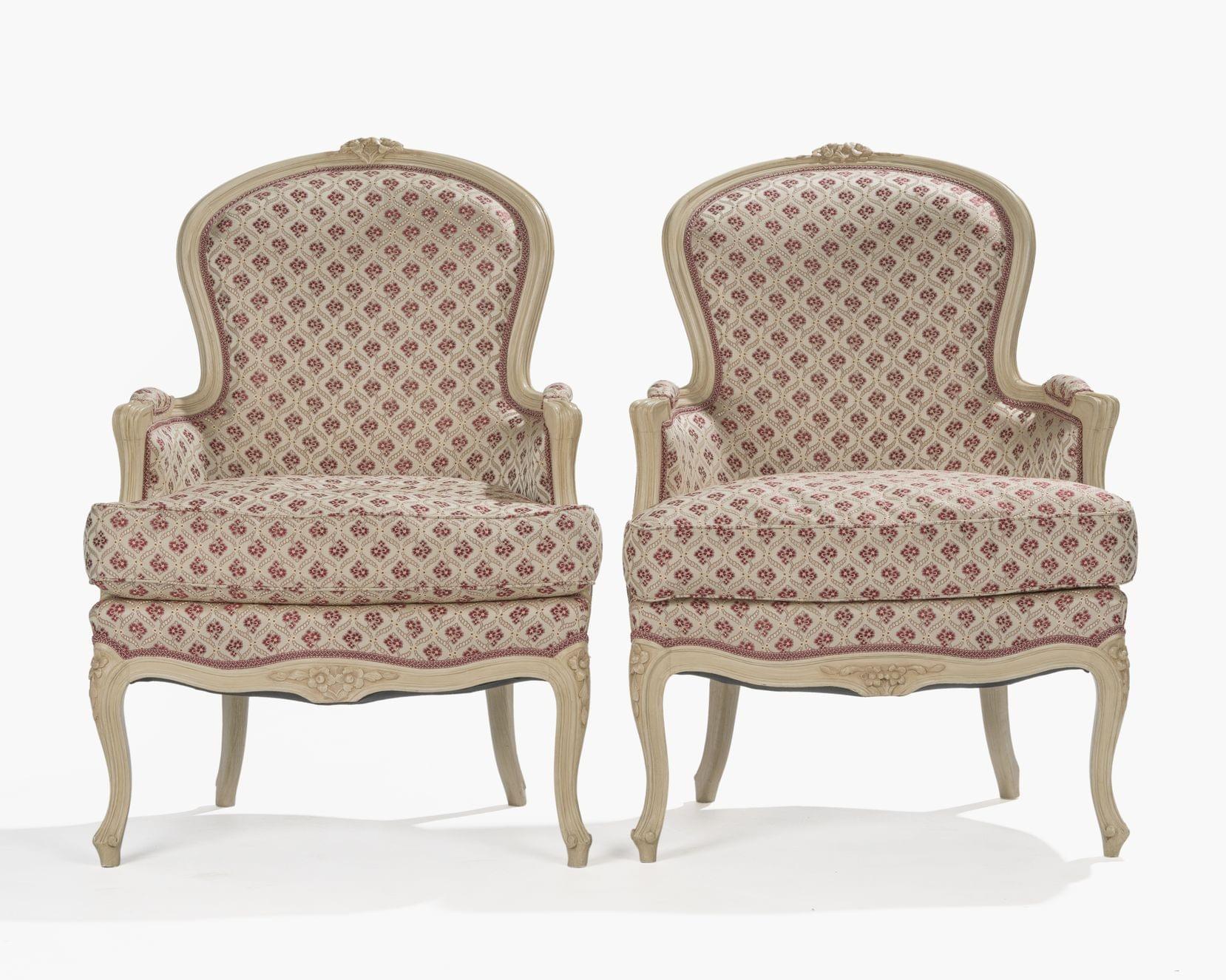 Bois laqué beige, soierie à décor de semis de fleurs pourpres