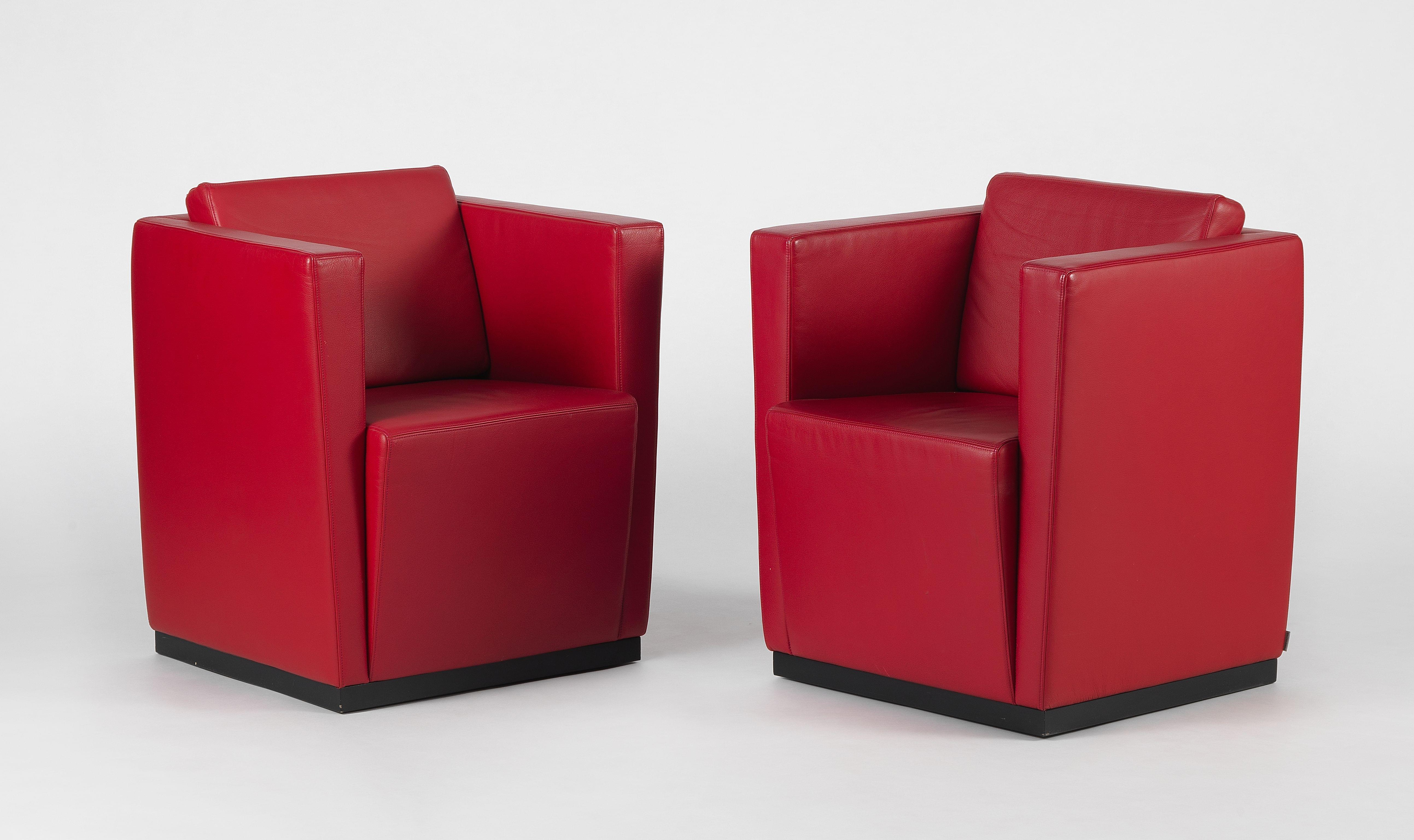 Cuir rouge, dimensions à vue 73x65x59 cm