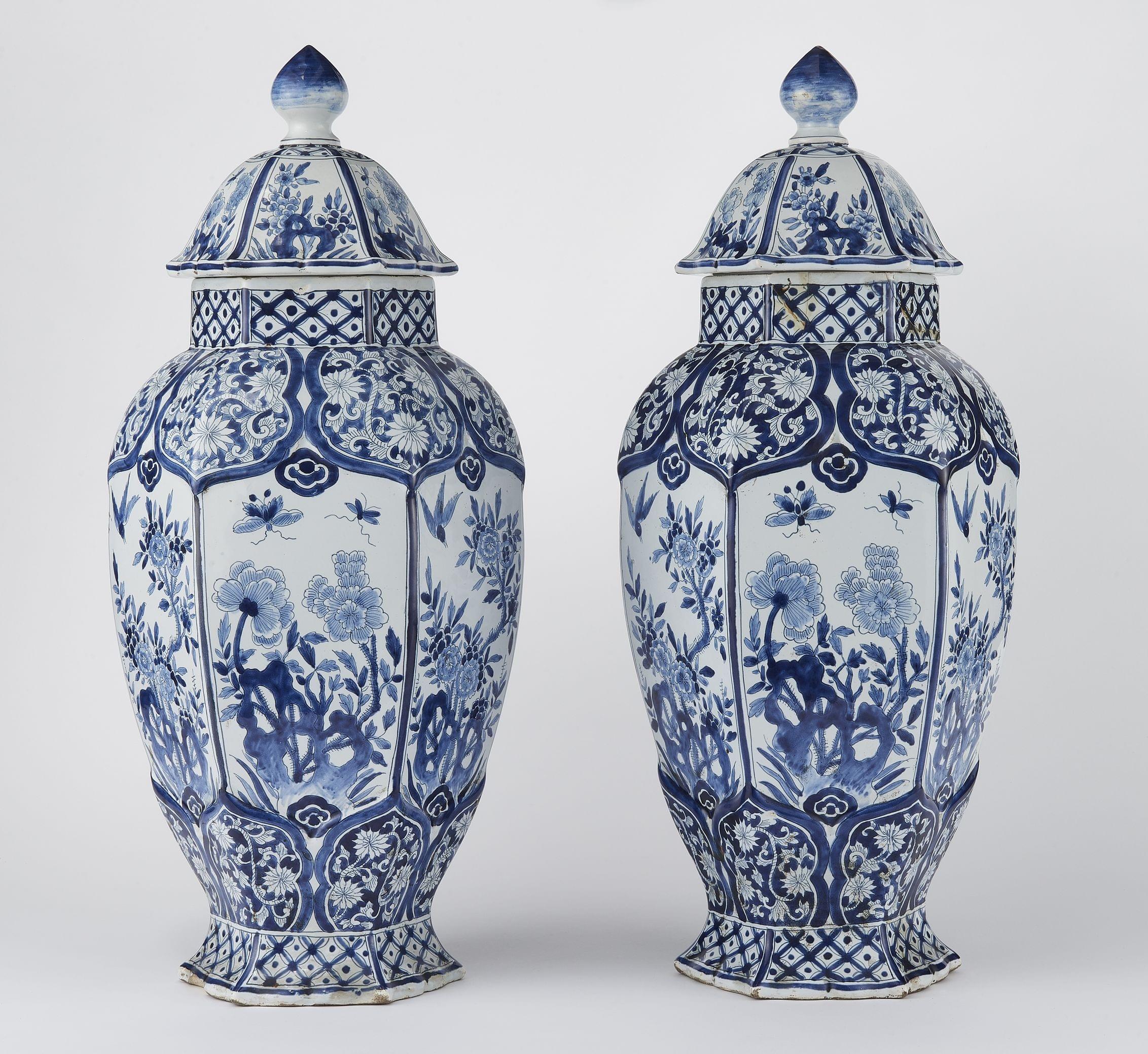 Faïence émaillée bleu à décor de fleurs en réserve, H 45 cm