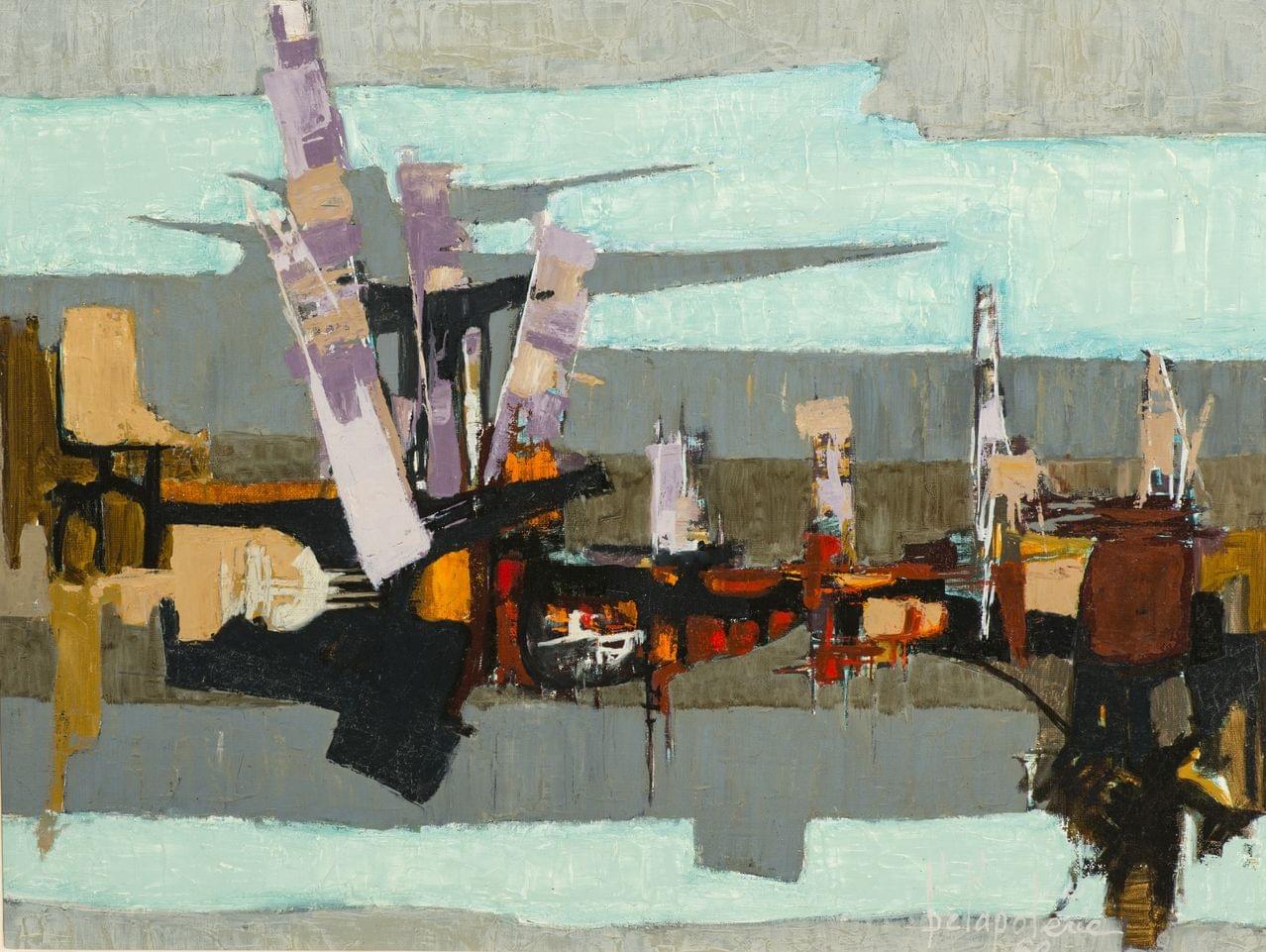 Orage menaçant, huile sur toile signée et datée 60, 39,5x52,5 cm